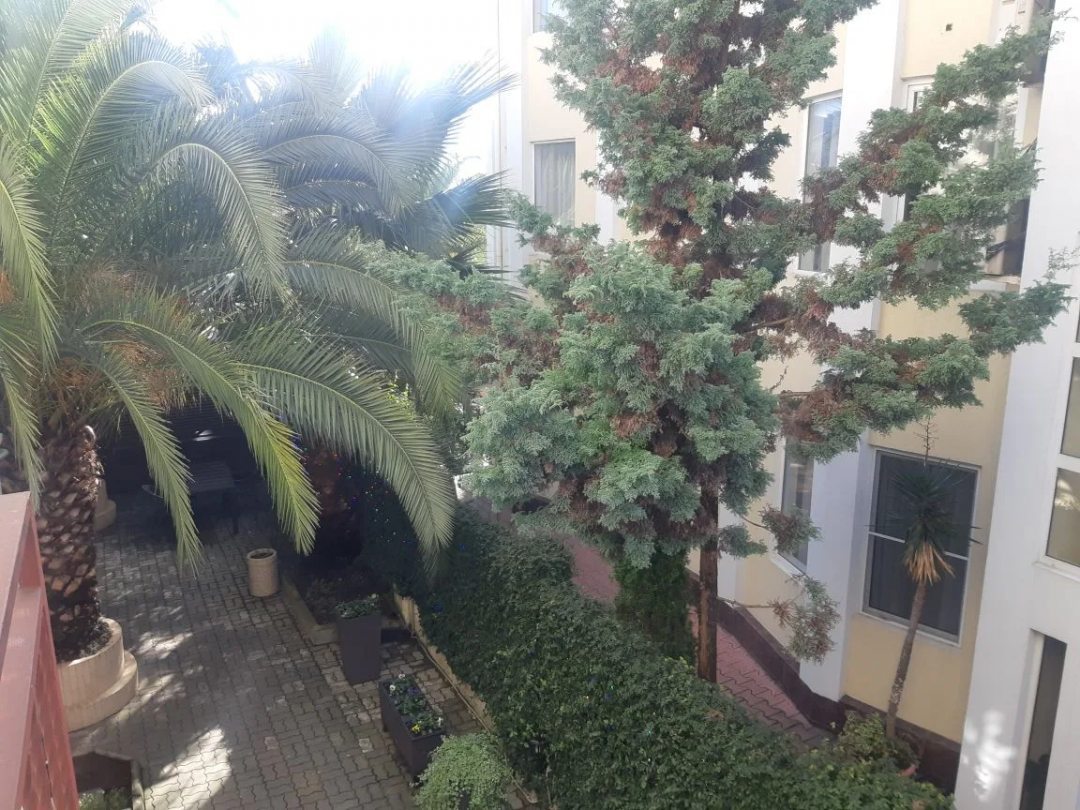 Проживали трое суток в феврале. В номере работала батарея, было тепло, хотя весь день лил проливной дождь. Номерок небольшой, но уютный с балконам на втором этаже. Красивый уютный дворик, где растут пальмы. Есть спортивная детская пложадка. Есть кухня общая с микроволновкой. Постельное чистое. В номере чисто. Есть холодильник. чайник, стаканы и ложечки. На входе в гостиницу на ресепшене находится приветливая администратор. Интернет работает хорошо.