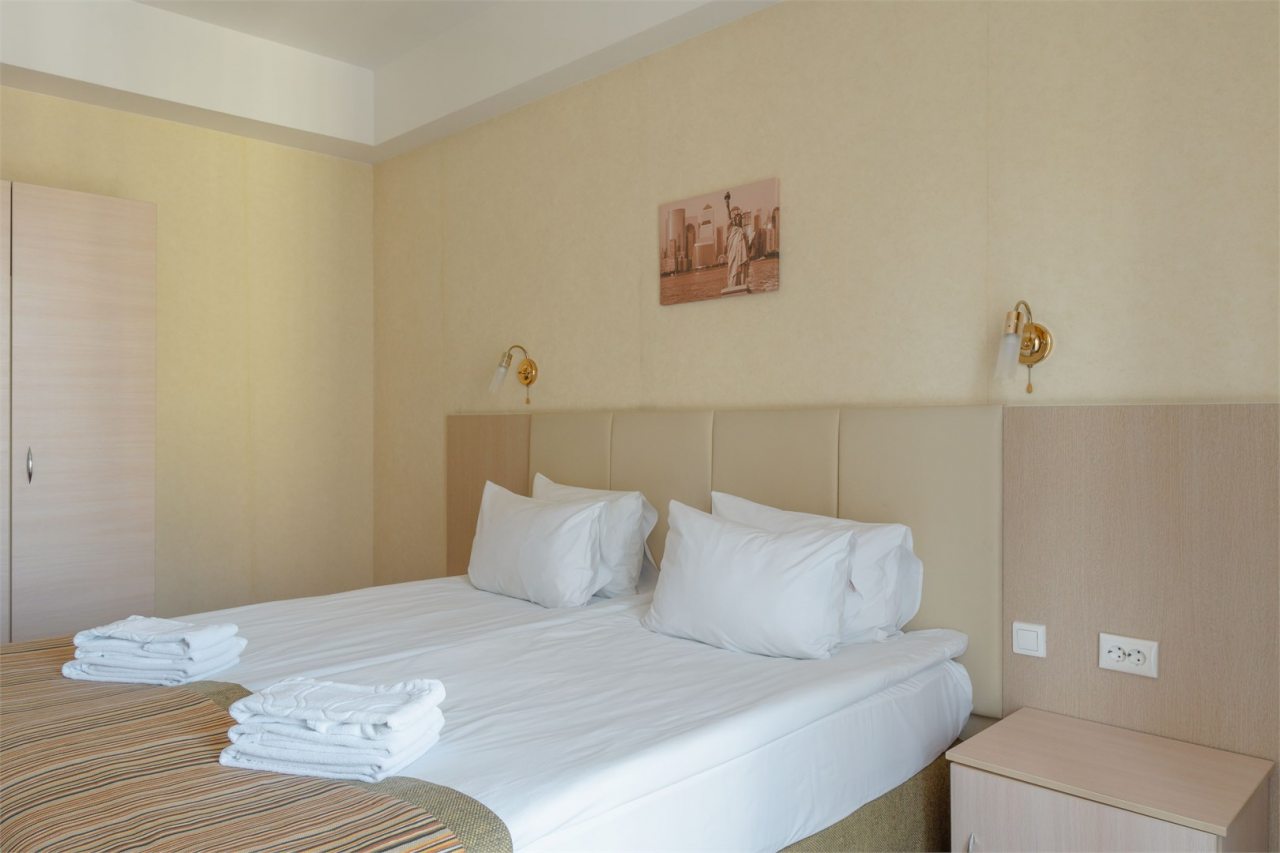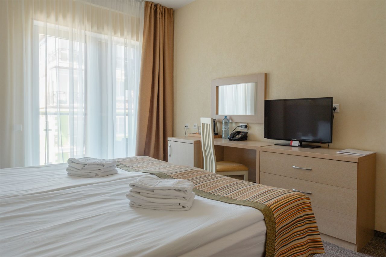 Замечательный отель, проживали здесь вдвоем. Нас сразу же расположил к себе приятный персонал, очень учтивые и приветливые. Для отдыха и развлечения есть все, что нужно: бассейн, сауна, тенниса и многое другое. Номер комфортный, уютный, телевизор есть, вайфай работает. Расположение удобное, прямо на берегу моря. Мы обязательно сюда вернемся в следующий свой отпуск.