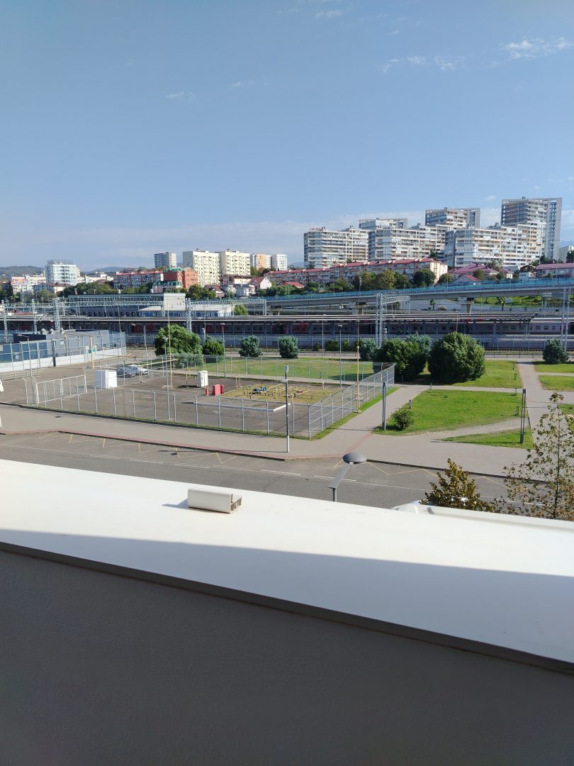 Номер на двоих на третьем этаже,с балконом. Вид на жд вокзал. Чистота, а это важно. В номере ни каких посторонних запахов нет. Душ, раковина, унитаз, фен, всё исправно, ни где не течёт,не капает. Слышно было телевизор в соседнем номере, но не напрягало. Так же слышно поезда и самолёты, но в отдалении и это лучше чем машины под окнами. Бронировали на сутки, отличное расположение!