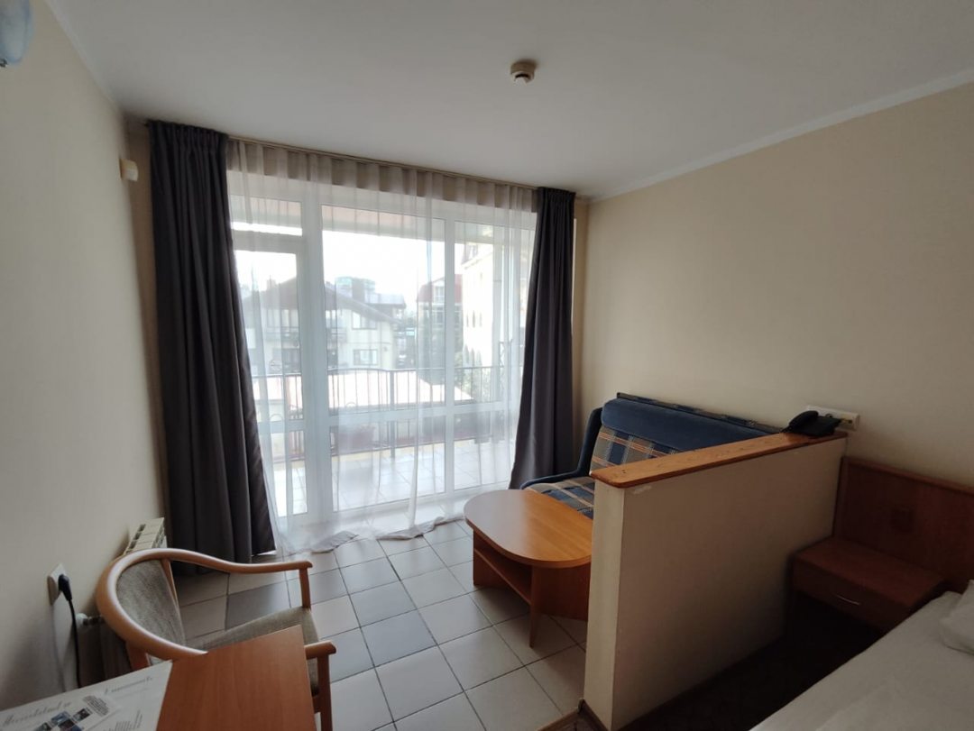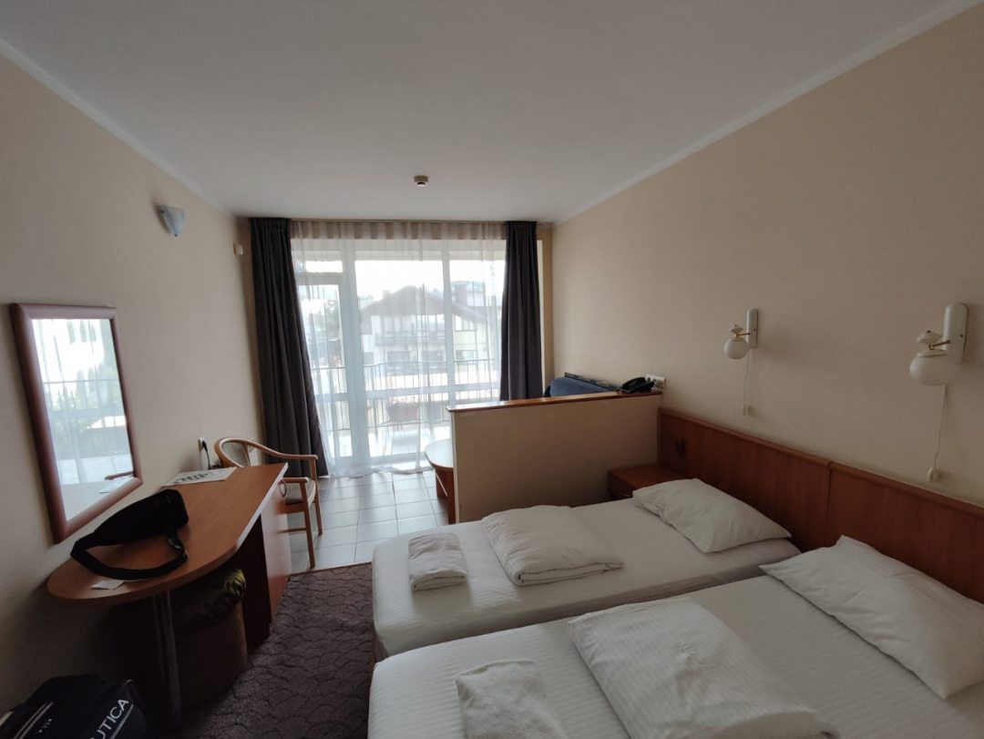 Отдыхали со свекровью во 2ой половине сентября.Цена была простт подарок. Спасибр. Еще. Сайту 101 отель за скидку ! Отель находитмя в 5 минутах езды от ЖД волкзала. Пешком 15 -17 минут . Симпатичный компактный ,но все в нем есть для комфортного отдыха. Питание не брали.. заселенип в 3 часа дня ,но нас этт не напрягало В отеле чисто. Горничные убирают постоянно . Не надоедают . Белье и полотенца меняли пр графику . Шампуни мыло бумага давали не жалея .Есть лифт . Подогреваемый бассейн с вечерней подсветкой и водопадом. Номер у нас был хороший, лучше ,чем ожидали . Холодильник, Ттелевизор, кондиционер. Столик с креслами и диван. ,2е односпальнве кровати зеркало с консолью , шкаф и даже сейф! Балкон у нас выходил на бассейн. Утюг, гладильная доска на ресепшене .Там же есть микроаолновка . Если нужно даже есть несколько мягких подстилок для пляжа. Не плохой кофе из кофемашинв можно купить нс ресепшене . В отеле есть вайфай . Немного шумно о. Самолётов т. К рядом аэропорт и от жд путей щс отелем. Но при зарытом балконе нормально. Ванная комната не большая , но всп работало без нареканий .
