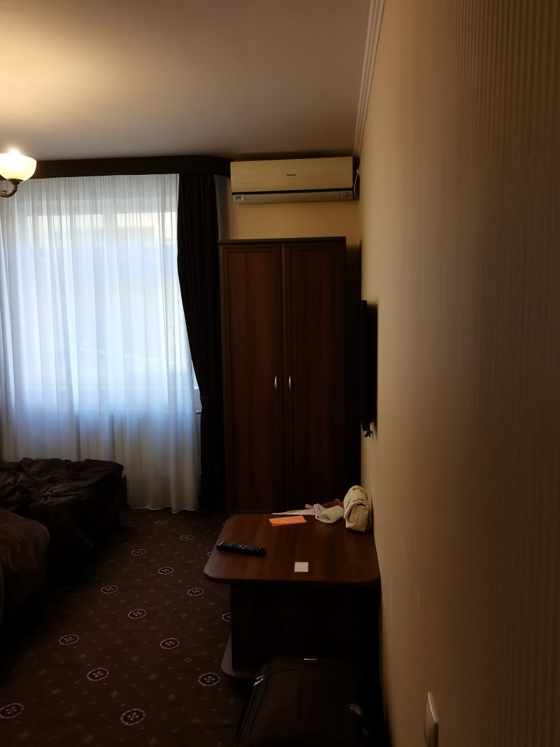 Номер- 2-х местный стандарт с балконом. Есть все необходимое для комфортного проживания: мощный кондиционер, холодильник, чайник, телевизор, мини-сейф, достаточный набор вешалок в шкафу, тапочки. В целом добротная мебель и 7 розеток на 220В. Великолепный закрытый балкон-лоджия с сушилкой и 1.5-спальным раскладывающимся диваном! У кого храпящая 2-я половина сразу поймут такой нюанс- короче, полноценное место для отдыха - это не "пенал" в аэропорту. Вполне быстрый интернет.