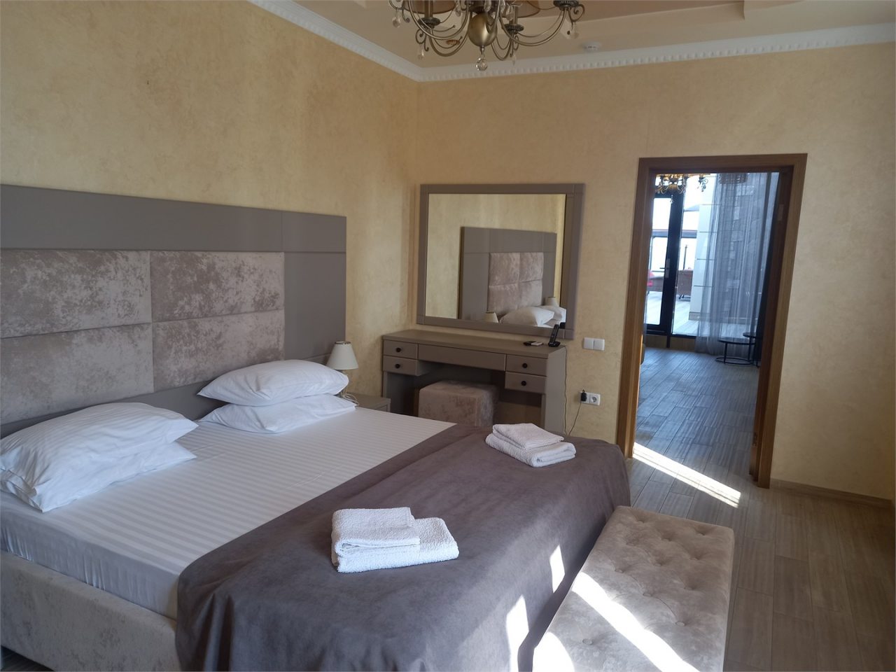 Ежедневная уборка, всегда чисто. Рядом рестораны и кафе, а море — в шаговой доступности. В номере была терраса, где мы загорали.
