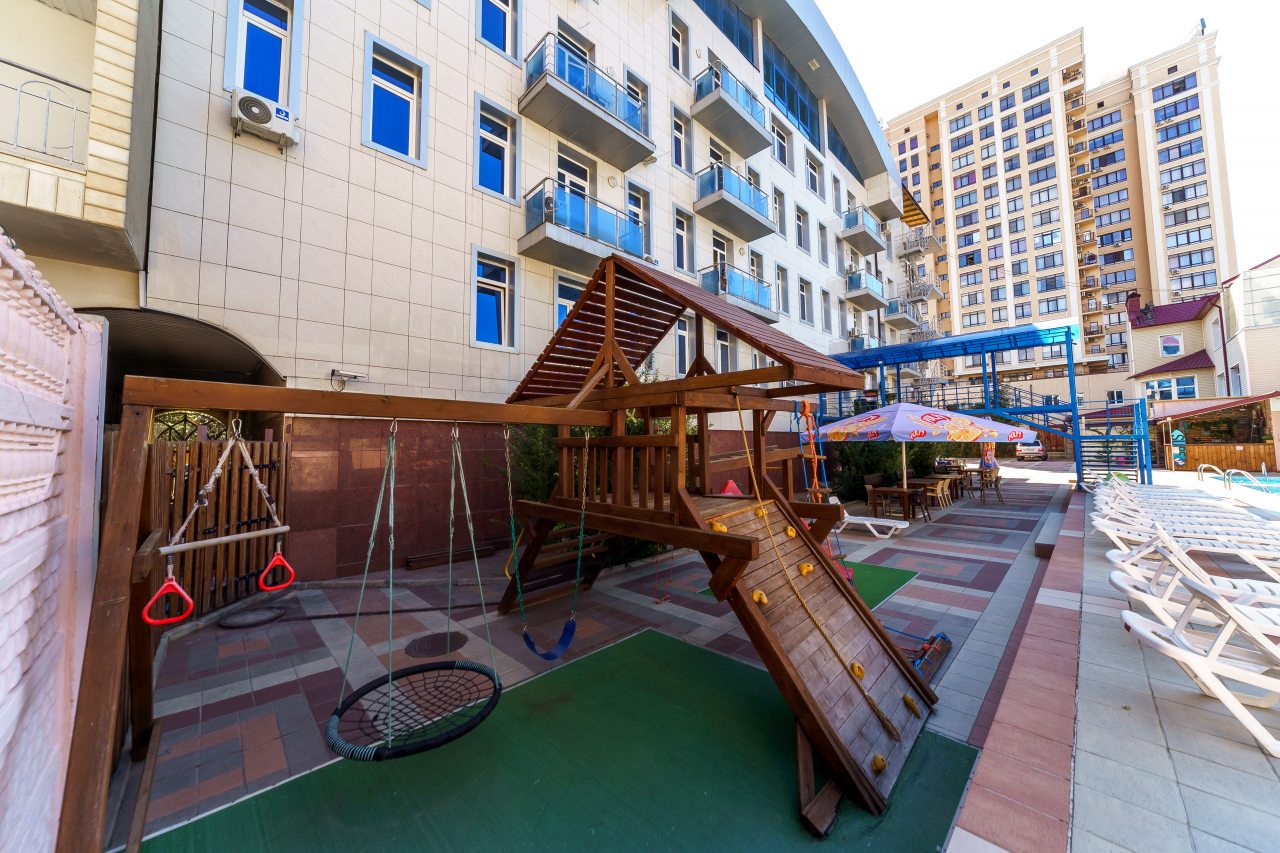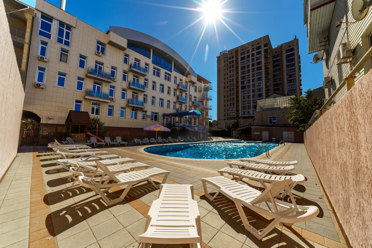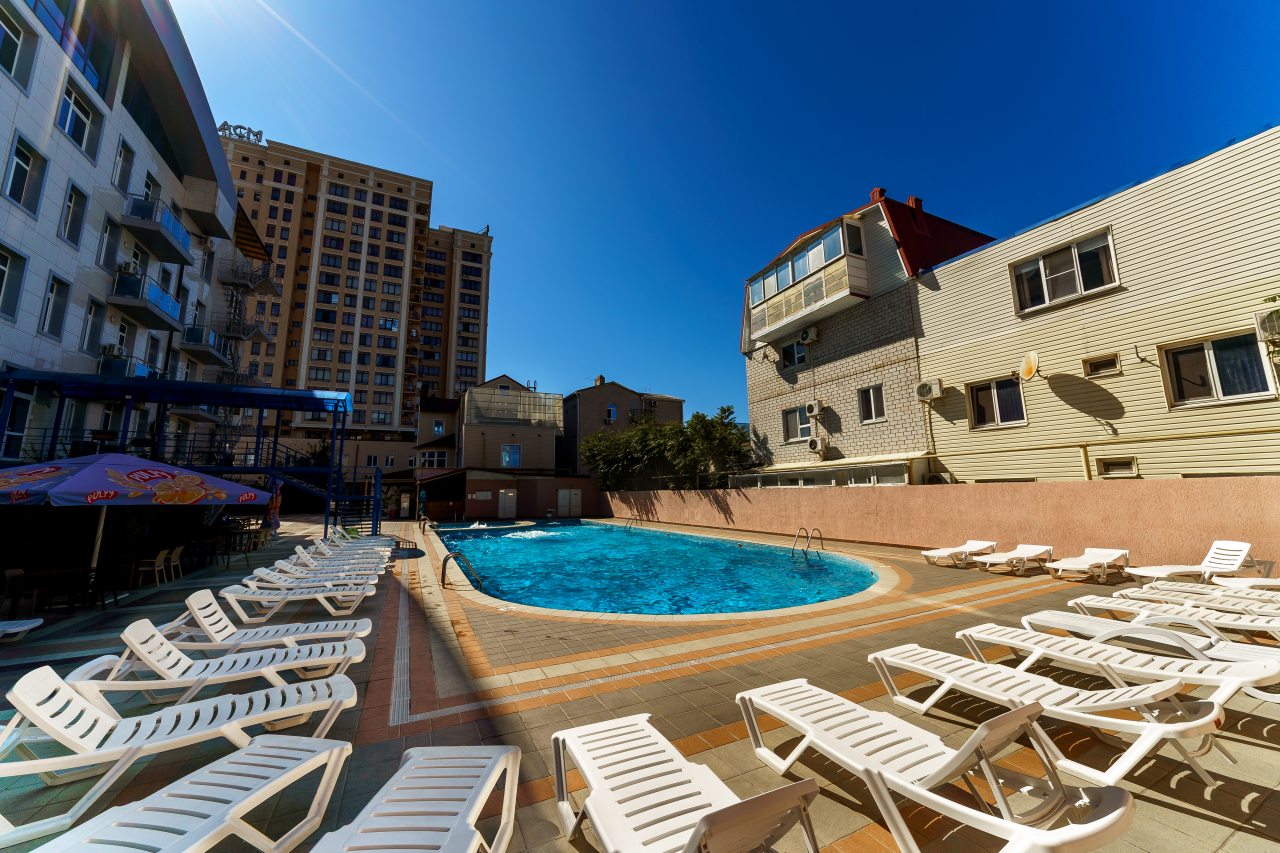 Очень хорошее расположение: близко к морю, к Набережной, рядом карусели. Брали полный пансион, кормили неплохо. Бассейн большой и чистый. Есть боулинг, бильярд. Персонал приветливый. Всё замечательно.