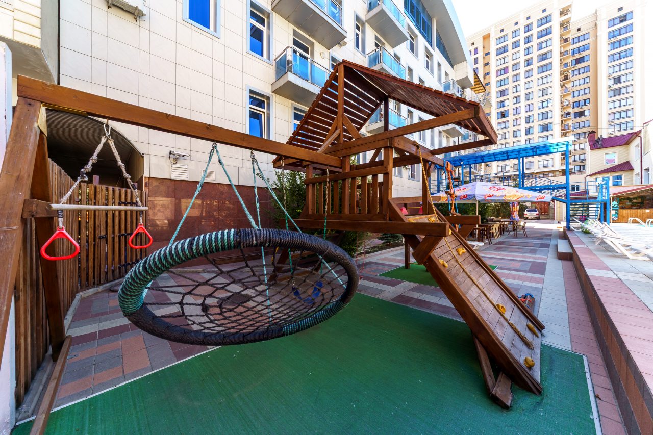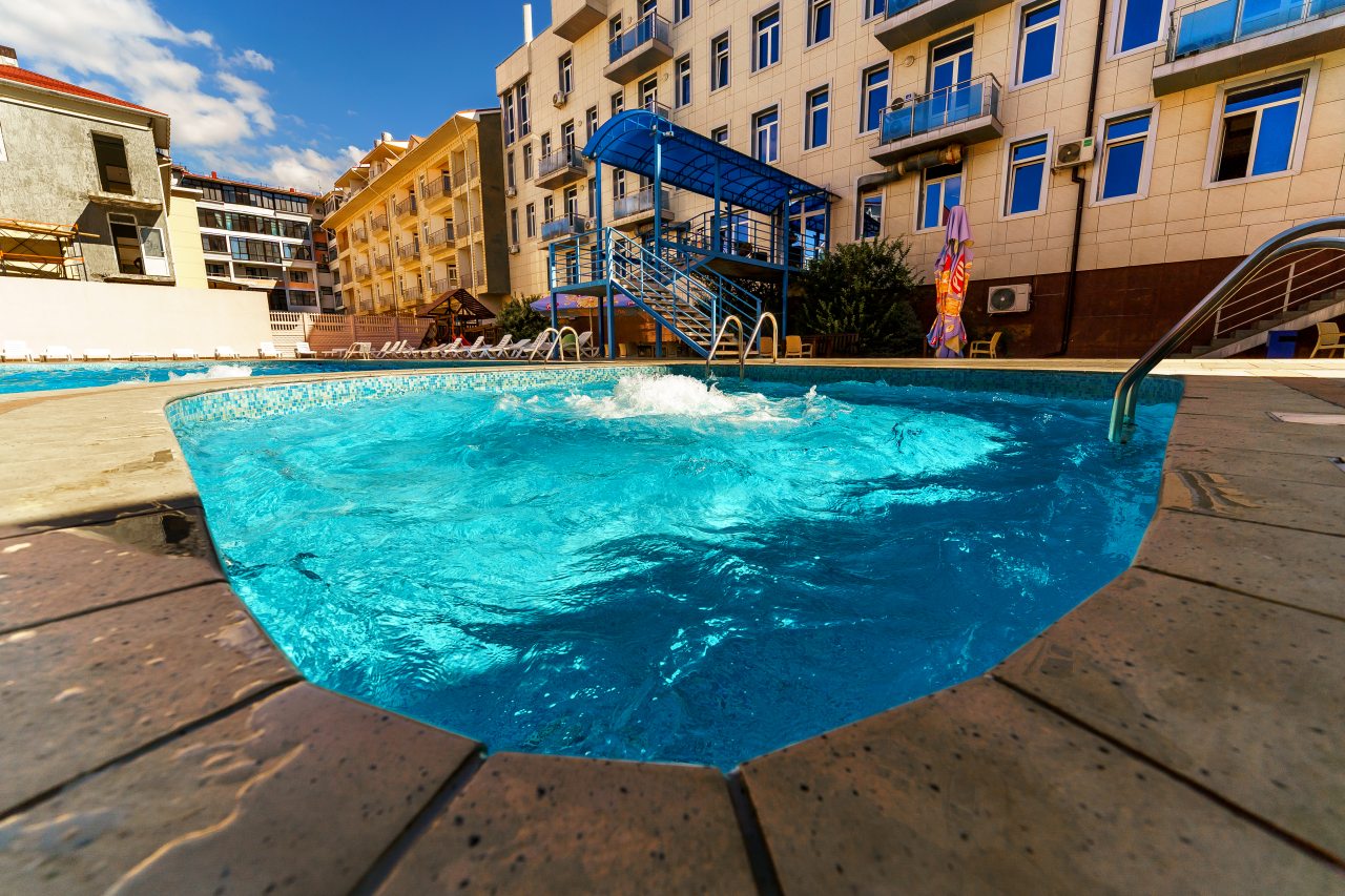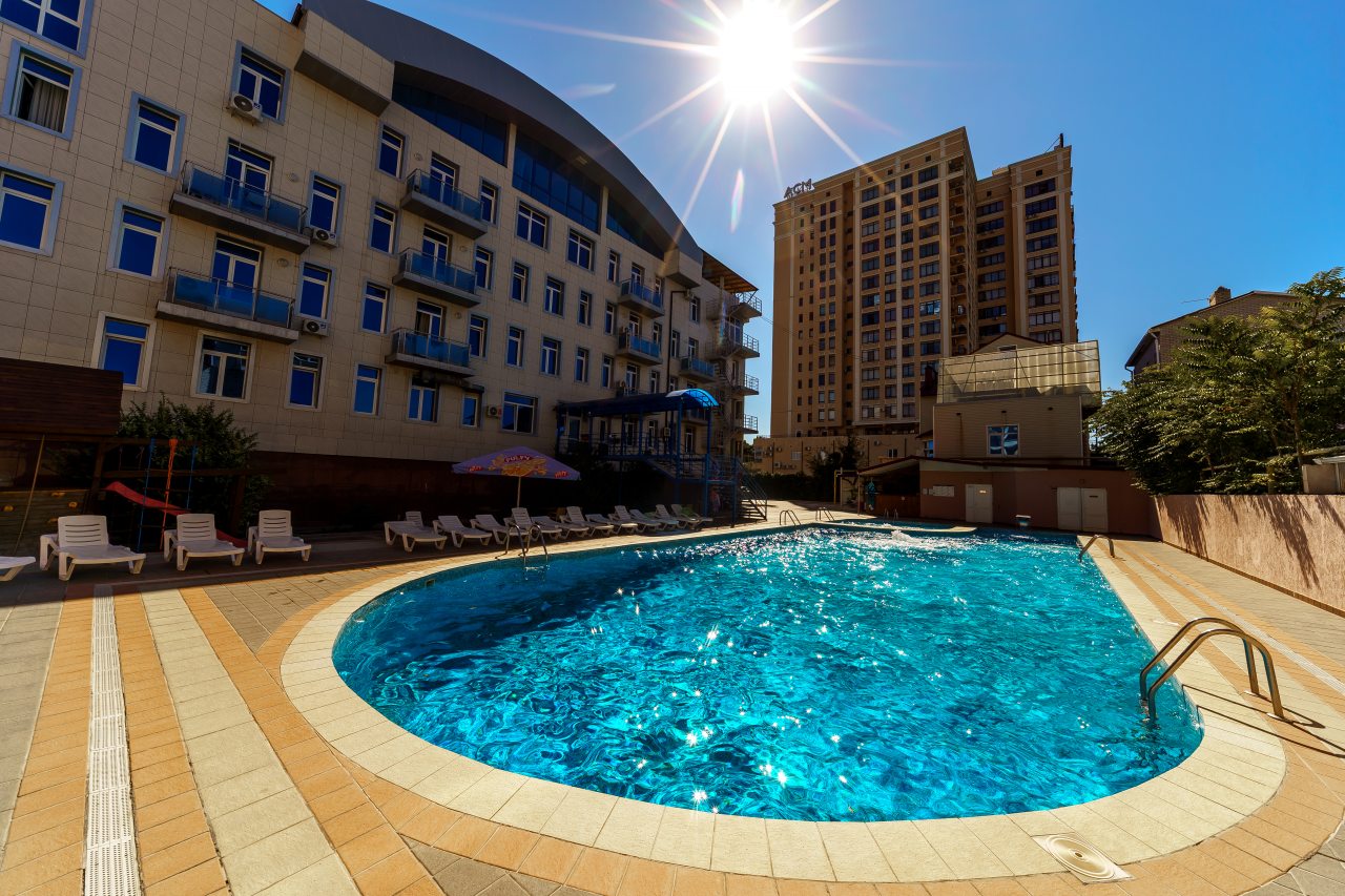 Очень хорошее расположение: близко к морю, к Набережной, рядом карусели. Брали полный пансион, кормили неплохо. Бассейн большой и чистый. Есть боулинг, бильярд. Персонал приветливый. Всё замечательно.