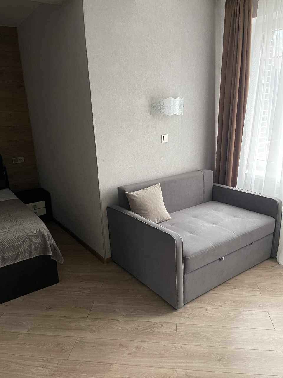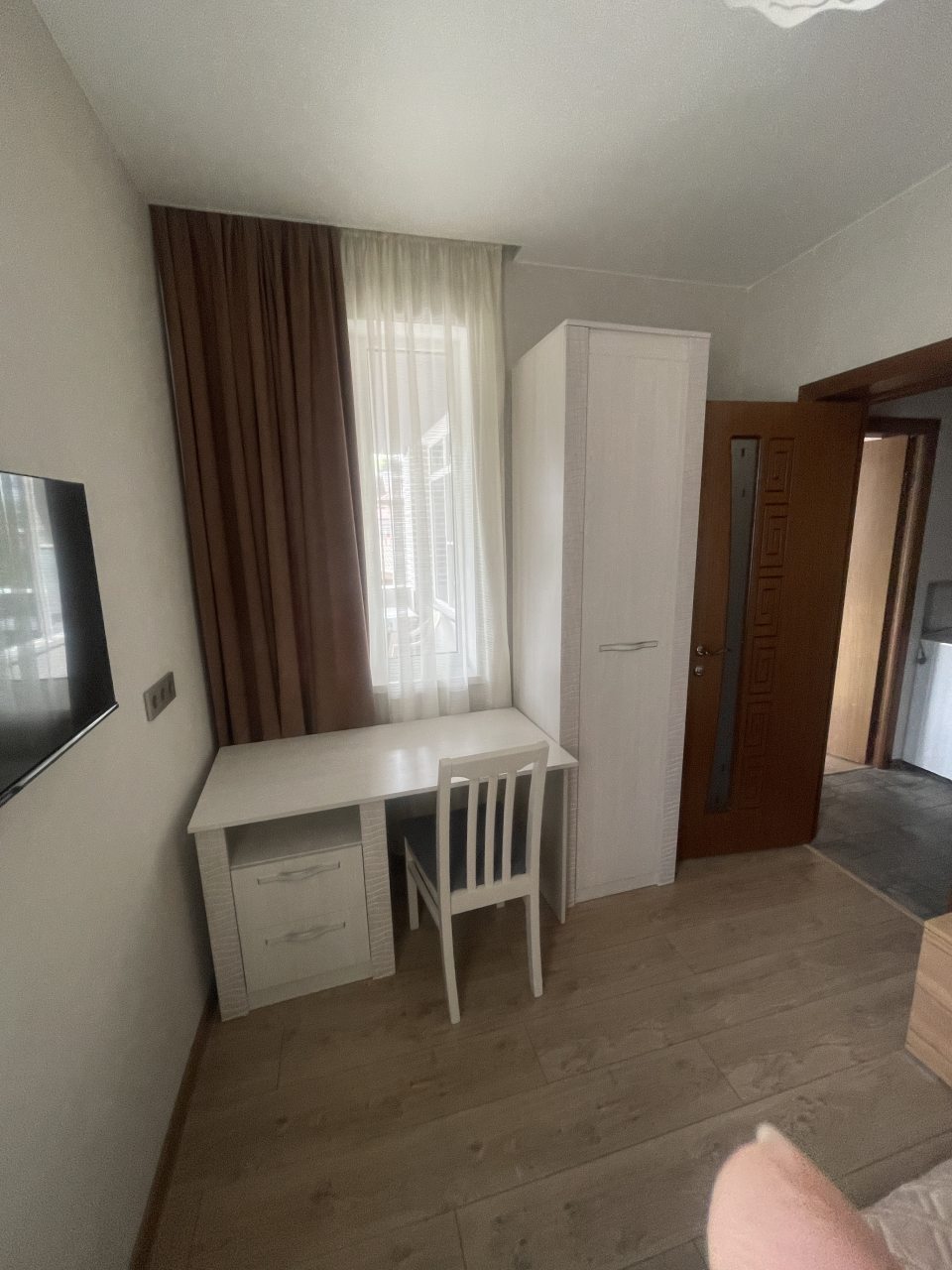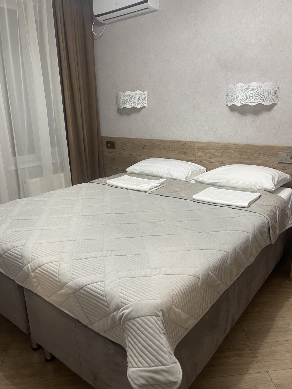 Приехали поздно с семьёй и маленькими детками, встретили, заселили все показали. Снимали один большой двухкомнатный номер , и второй мужа брат с балконом где удобно выходить курить. Часто путешествуем есть с чем сравнить, но тут выше всех похвал. Есть абсолютно всё, очень уютно, мебель новенькая, и что поразило матрасы на кровате просто лучше чем дома, спишь как младенец. На территории есть мангальная площадка со столиками, вечерком можно посидеть и тут же рядом в цокольном этаже есть детская комната. Все ухоженно, чистенько, имеется кухня со всем необходимым. До моря рукой подать, пляжи находятся рядом , гуляли с коляской. Обязательно вернёмся сюда ещё. Всем рекомендуем. Сергей и Юля