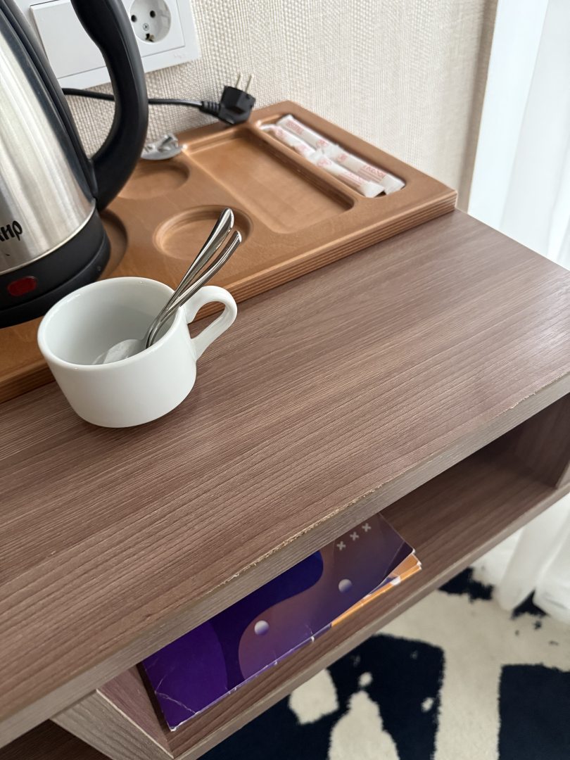 Из недостатков: в ванной ждал паук)) приветствовал нас. Не домывают ванную комнату, кран вот вот кажется останется в руках, жили в первый приезд на этажах выше, там с сантехникой проблем не было. Вид из окна на трассу, с двери дует, не плотно закрывается, спасает сплит-система. По еде замечание все было холодное и приходилось греть, так же не особо ассортимент был. Алкоголь бармен долго готовит, ходит с одним стаканом в другое помещение, я так понимаю за льдом, поставьте ей лед на месте, бедняга бегает вдаль с одним стаканом туда сюда. Либо специально сделано, чтобы дольше ждали и меньше заказывали, в зале летали мухи, не много, но расстроило. Не работает давно соляной грот, не всегда натоплены сауны, на гейм центр обратите внимание устаревшее все, диски убитые, работает всего две приставки, джойстики расшатанные и все разряжены, за комнатой никто не следит, не у кого чтоли бо спросить. обратите внимание.