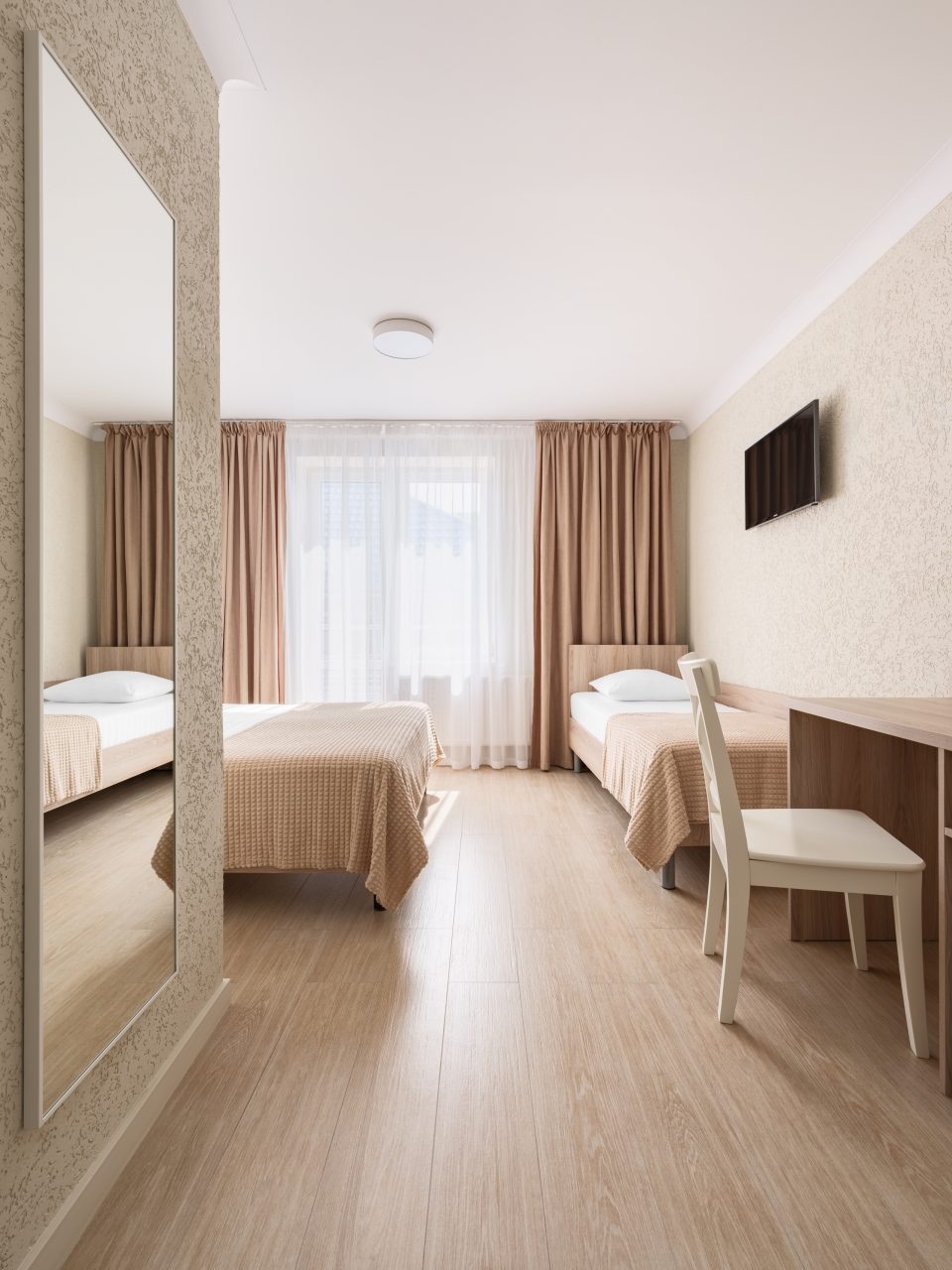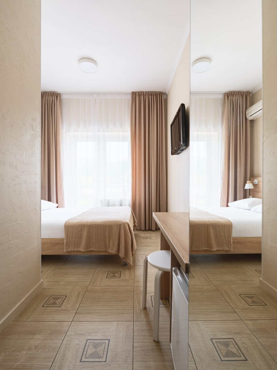 До приезда отель связывался с нами уточняли, когда приедем. По приезду встретили, обьяснили где лучше припарковать машину (у отеля своя парковка с видеонаблюдение) Понравилось расположение, обслуживание. В номере все есть для комфортного проживания удобные кровати, кондиционер, телевизор. В ванной комнате новая сантехника фен, шампунь, кондиционер, гель для душа, туалетная бумага. Полотенца банные и для лица как новые. Влажная уборка и замена полотенец каждые 2 дня, замена постельного белья через 4 дня. Благодарим отель за хороший сервис. Удачи и процветания!