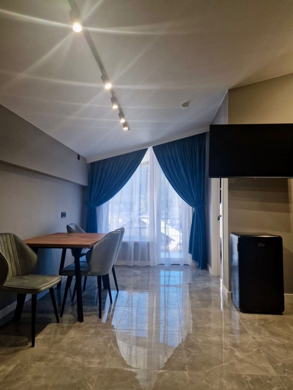 Отель современный, стильный, с комплексом банных услуг. В номере есть бытовая техника, свой санузел, комфортабельный душ. Постельное белье предоставляется. Номера хорошо убраны. Кафе работают неподалеку. До лыжных трасс и канатной дороги добраться несложно. Услуги трансфера здесь тоже предоставляются.