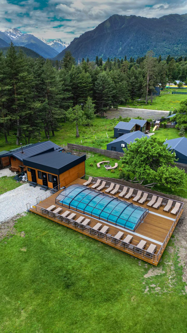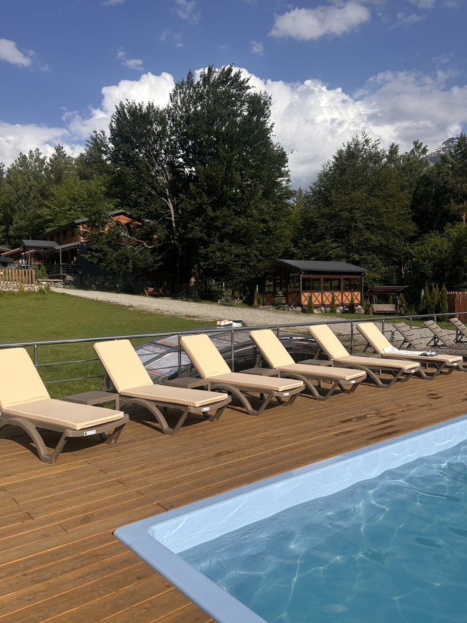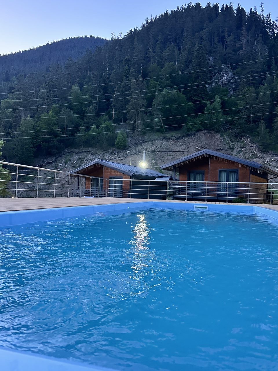 Хорошие, уютные домики. Свежий ремонт. Кухня, где есть всё! (Даже тёрка и губка для мытья посуды). Прекрасный вид из окон. Балконы, где можно посидеть вечером. Бассейн с подогревом. Детский городок и спортивный уголок. Приветливый персонал. Кафе, где вкусно готовят. Есть мангалы (8-10 м. от домика).