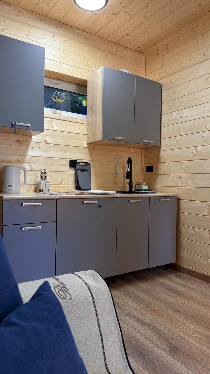 Понравилось расположение базы, рядом лес, тишина и покой, в тоже самое время близость всей необходимой инфраструктуры. Очень чисто, в домиках есть все необходимое для комфортного проживания. Приветливый персонал. есть парковка бесплатная, мангальная зона, у каждого домика своя терраса. Уютный небольшой дворик. Фото домиков соответствует реальности.
