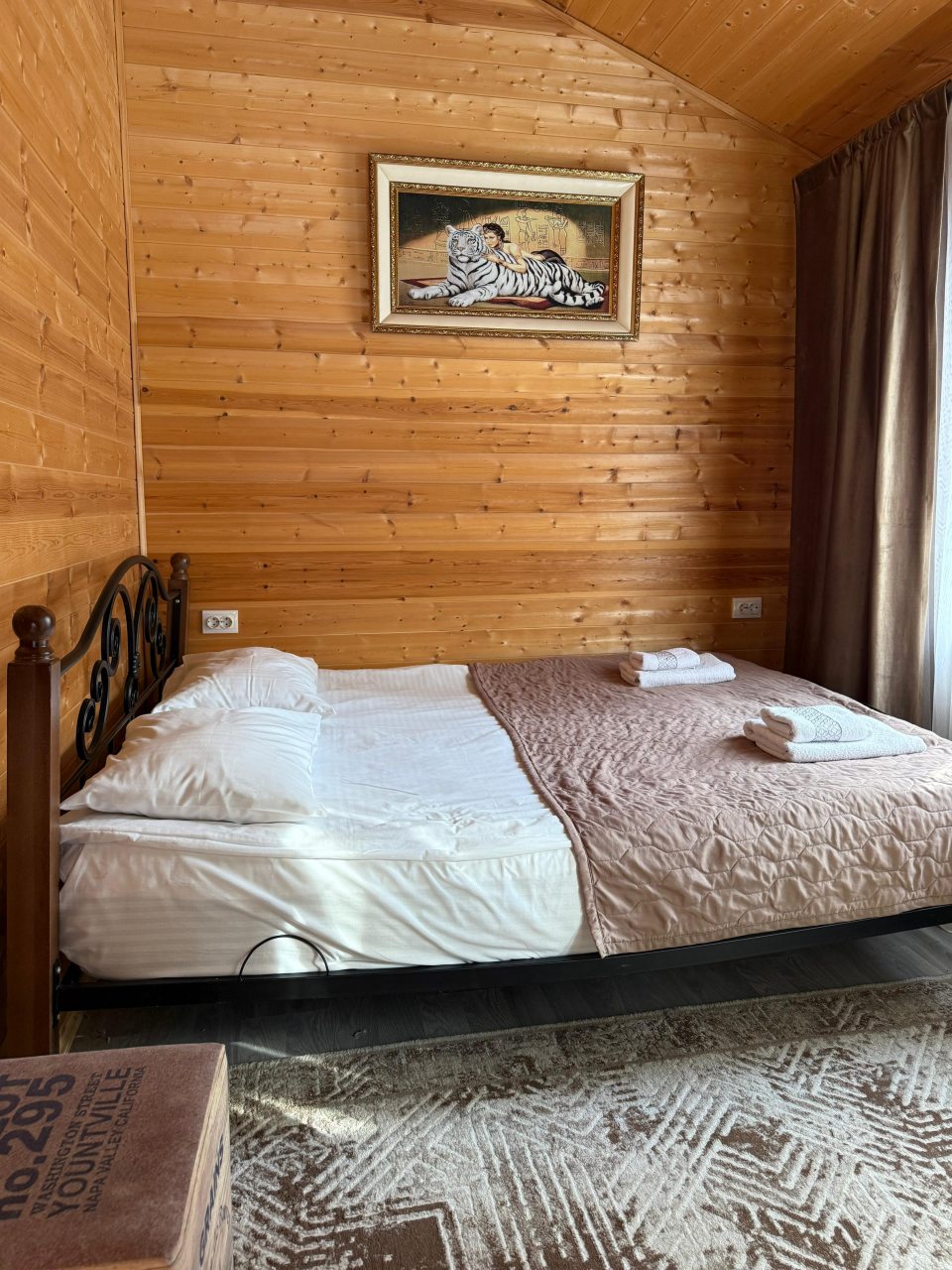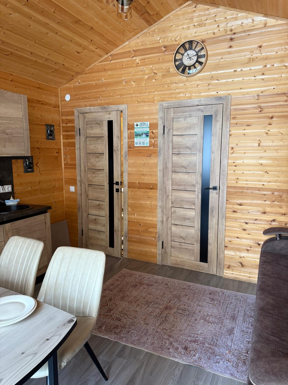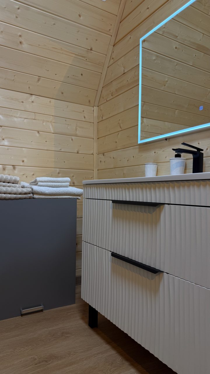 Территория ухожена, при этом сохранилась дикая прелесть — не бетон и плитка, а тропинки и мох. В домиках тепло, уютно, а особенно порадовали панорамные окна на лес. Отдыхали вдвоём, и чувствовали себя так, будто мы единственные на всей базе. Понравилось, что разрешают приезжать с питомцами — наш пёс был в восторге от прогулок. Можно арендовать велосипеды, что мы и сделали. Атмосфера располагает к неспешности и тишине.
