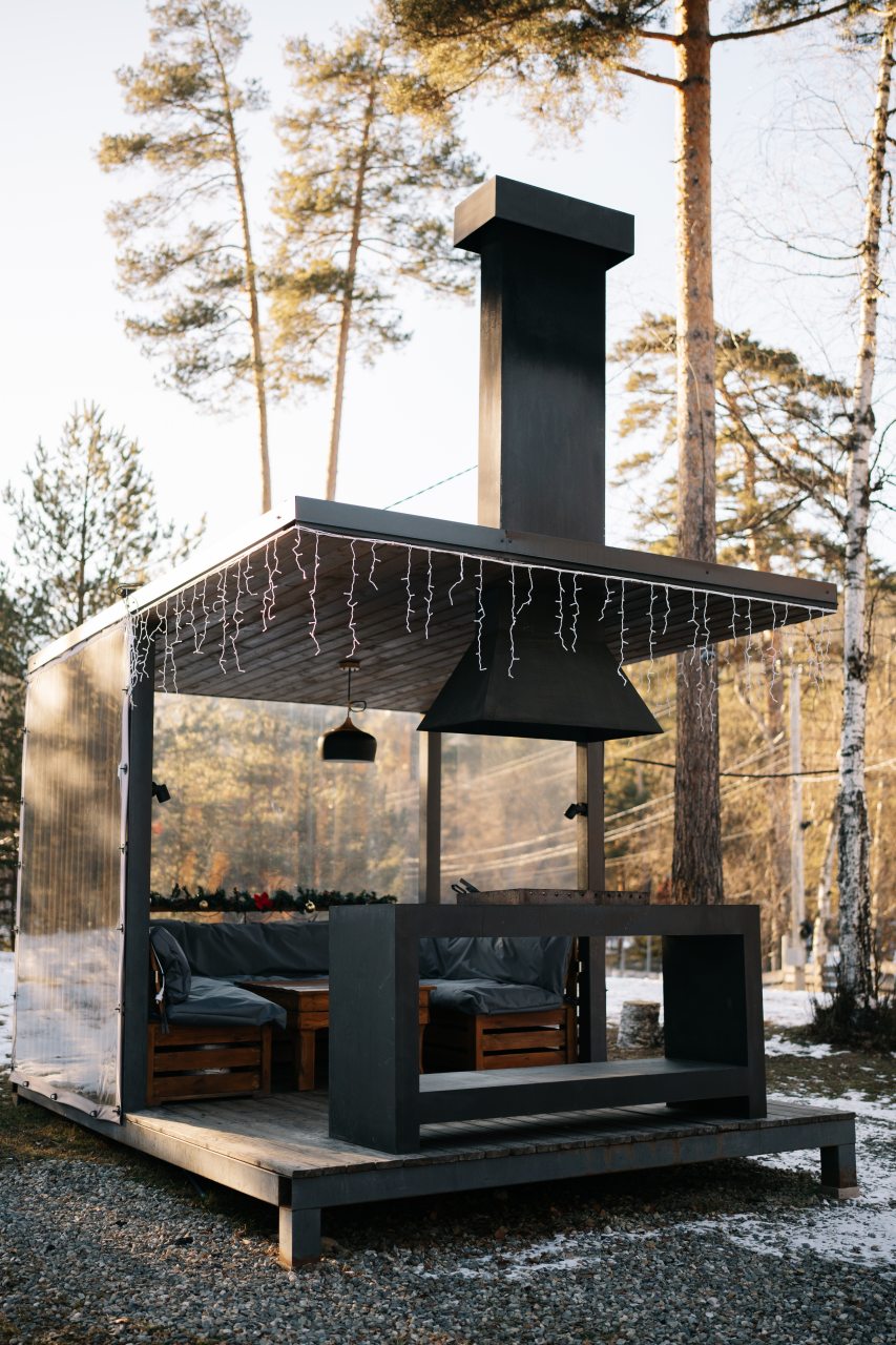 Понравился нам отдых на территории этой базы отдыха! Домики оформлены в эко стиле и построены из качественных материалов. На террасе нашего домика была установлена мебель, поэтому вечерами мы с удовольствием здесь отдыхали. В жилых комнатах идеально, в них можно с комфортом жить вечно! Коммуникации подведены, санузел отличный, кухня оборудована техникой и посудой.