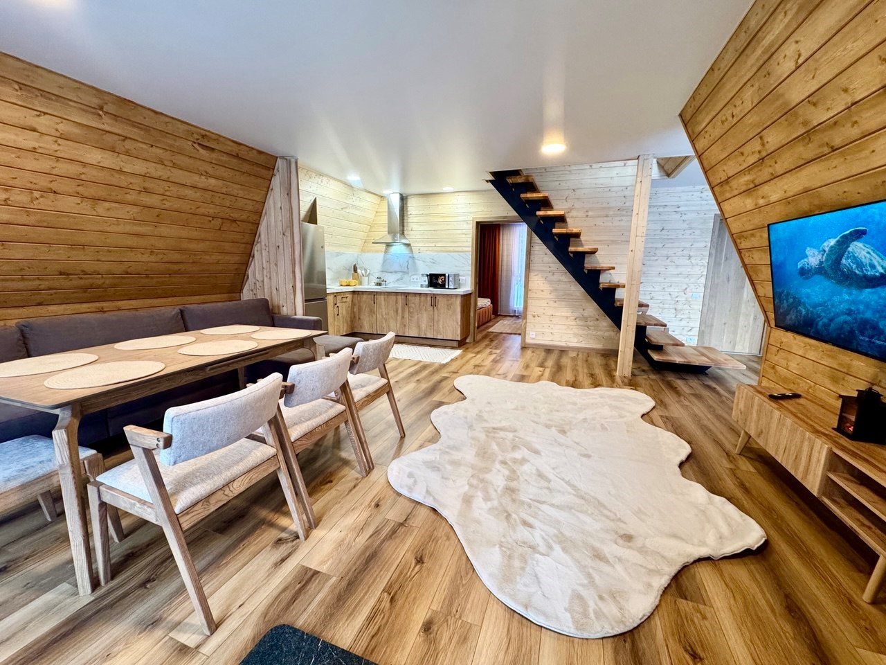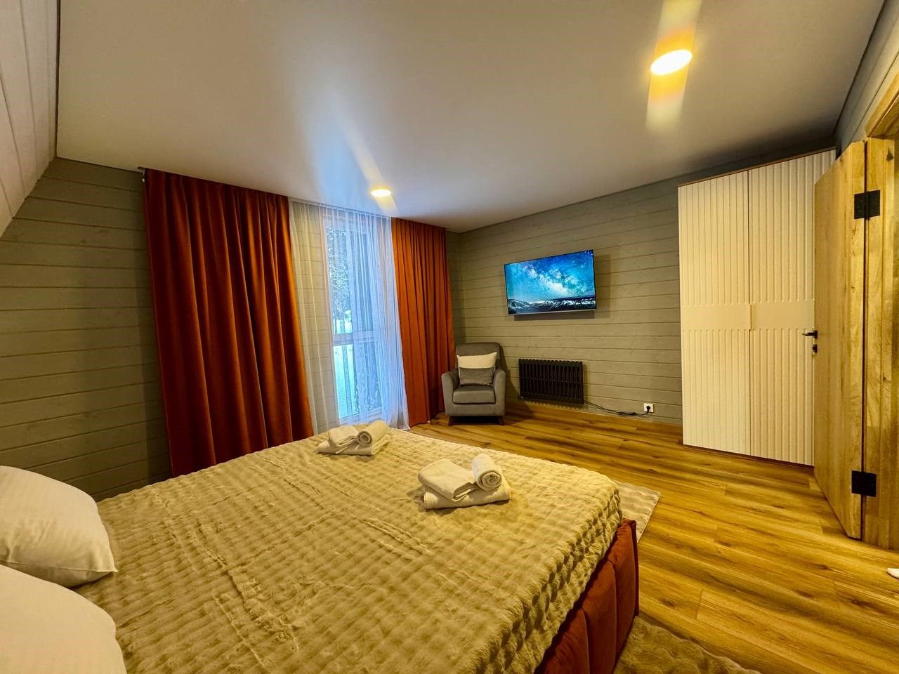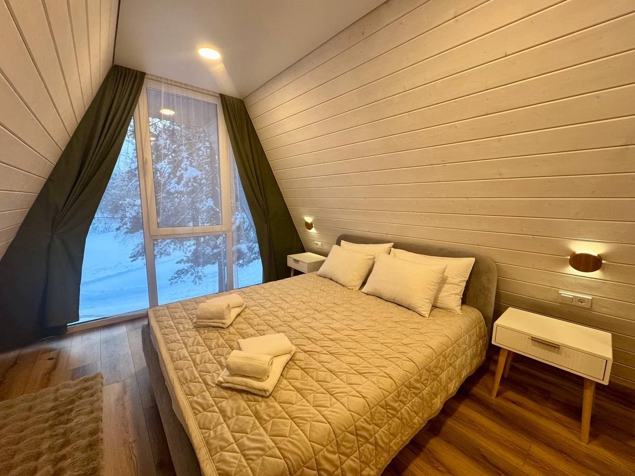 Сняли здесь с мужем домик, чтобы расслабиться и отдохнуть, а заодно и отметить здесь свой день рождения. Честно, лучше еще не праздновала. Здесь прекрасный воздух, невероятно красивые пейзажи. Тариф был с завтраками, кормят тут вкусно и сытно. Кровать большая, удобная. Предоставили новое, свежее постельное белье и полотенца. Остались только положительные эмоции, постараемся приехать сюда еще и зимой, чтобы посмотреть на снежные красоты!