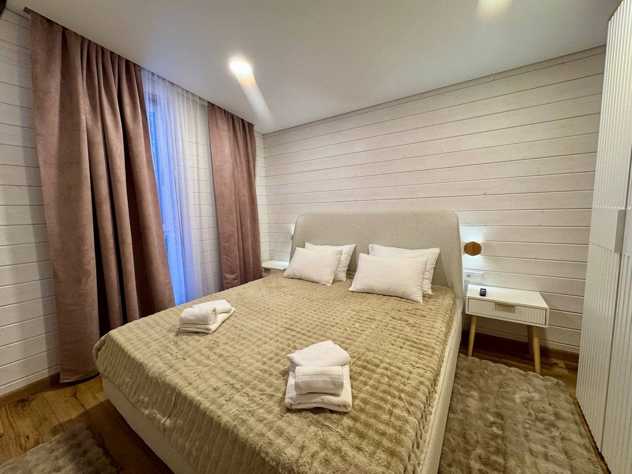 Хорошее настроение появилось именно здесь. Расчет и оформление заняли минимум времени, идеальное решение после напряженного передвижения. Потрясающая квартира с удобным расположением сделала отдых качественным и комфортным. Захочется вернуться самому и привести компанию друзей.