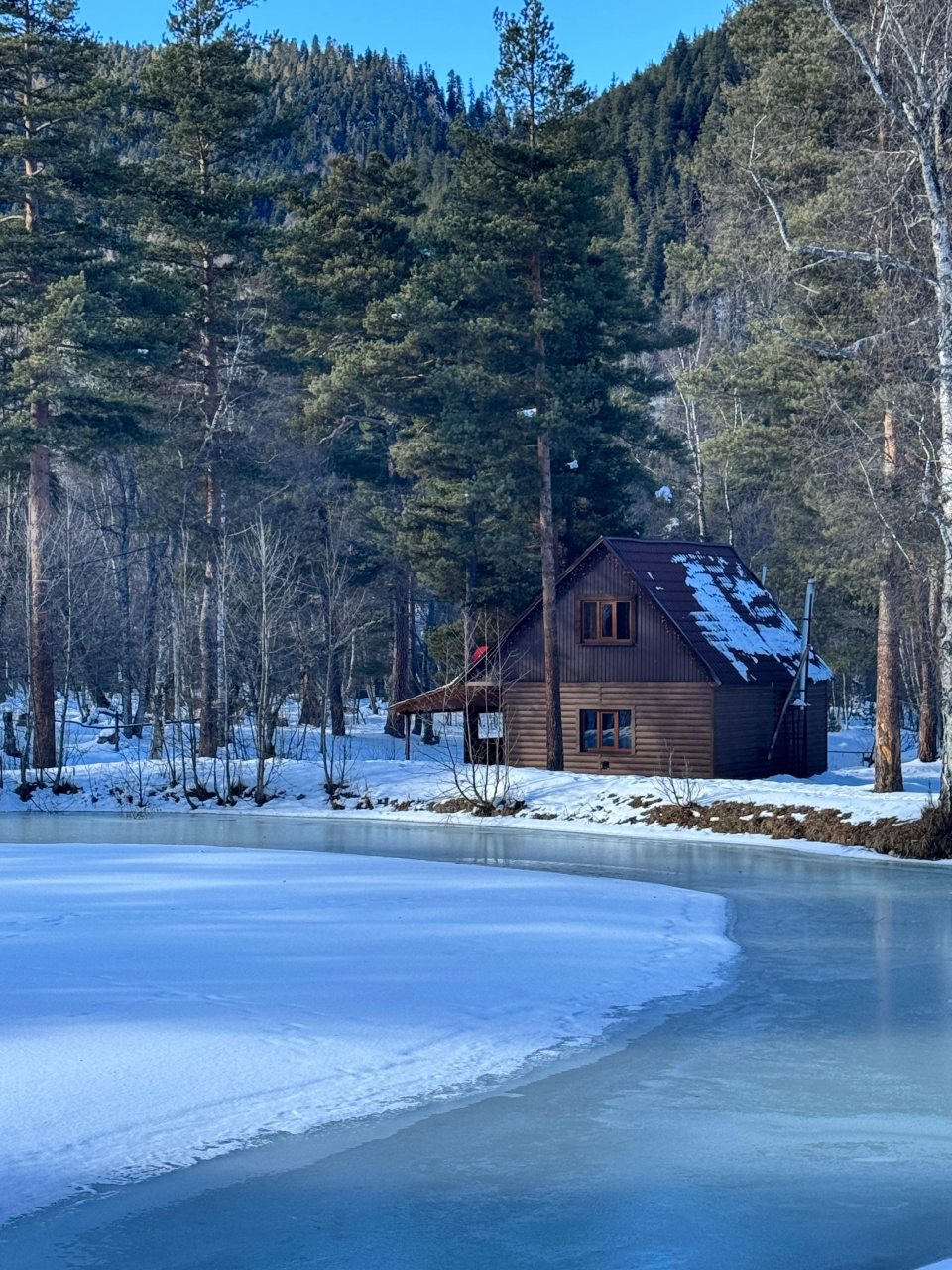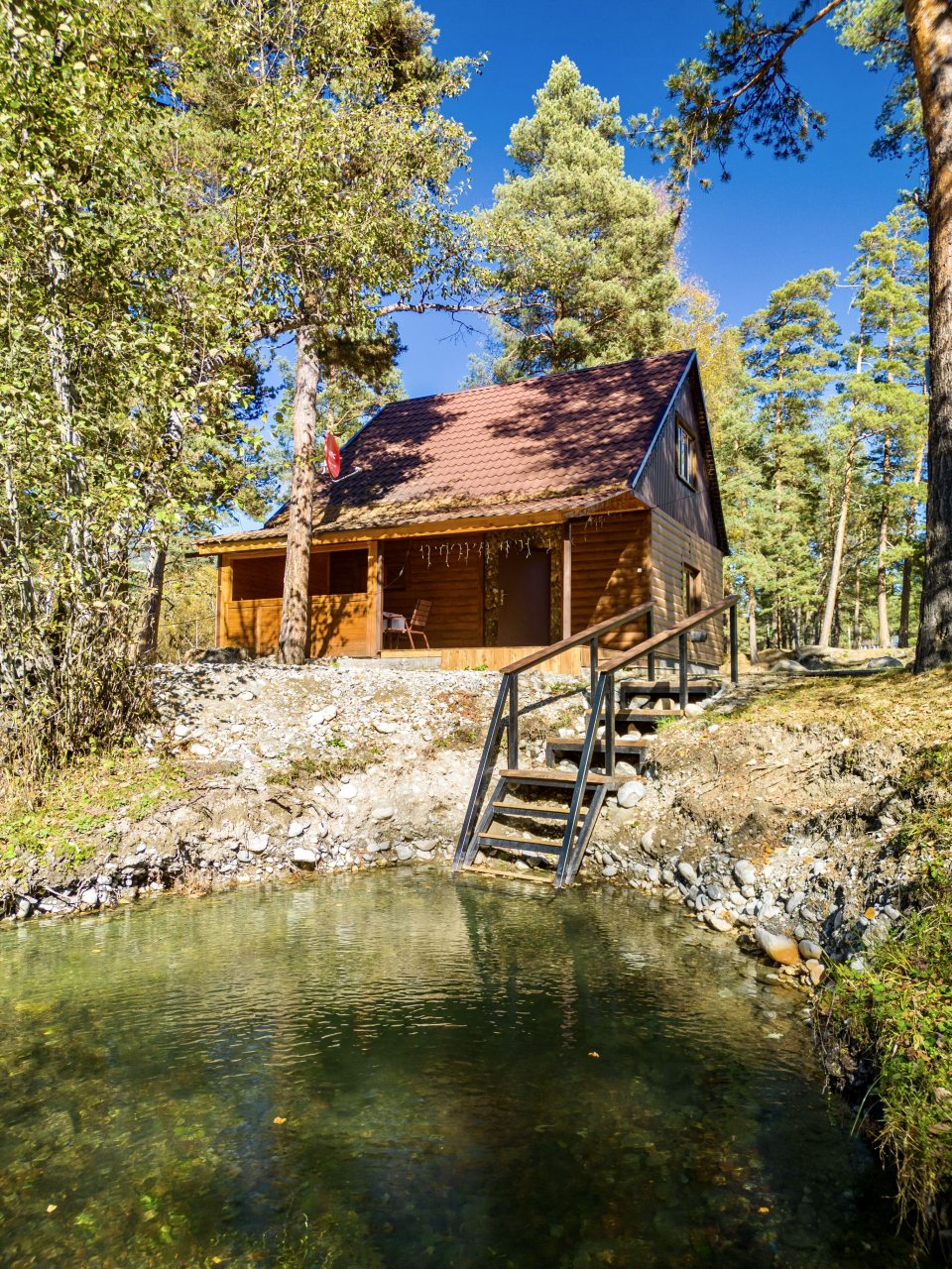 Шикарное расположение домиков в горах у озера! Это просто сказка! Из любого окна шикарный вид. Очень тихо, спокойно, уточки в озере, качели, большое кострище! Попадание в ожидание 100 Персонал приветливый. Наш домик был свободен, заселили раньше времени. Все чисто, уютно, все необходимое в наличии