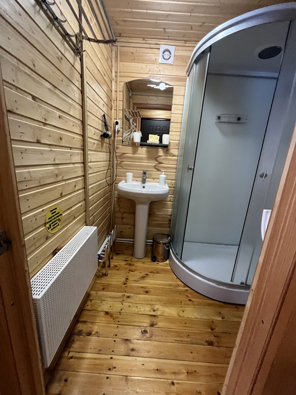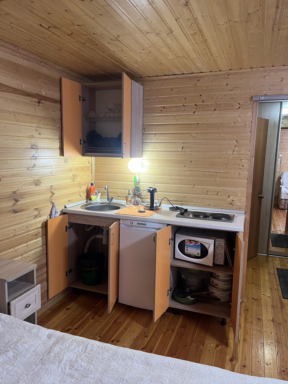 Горячая вода, душевая кабина, сушилки для обуви, полноценный кухонный уголок, полный набор посуды.