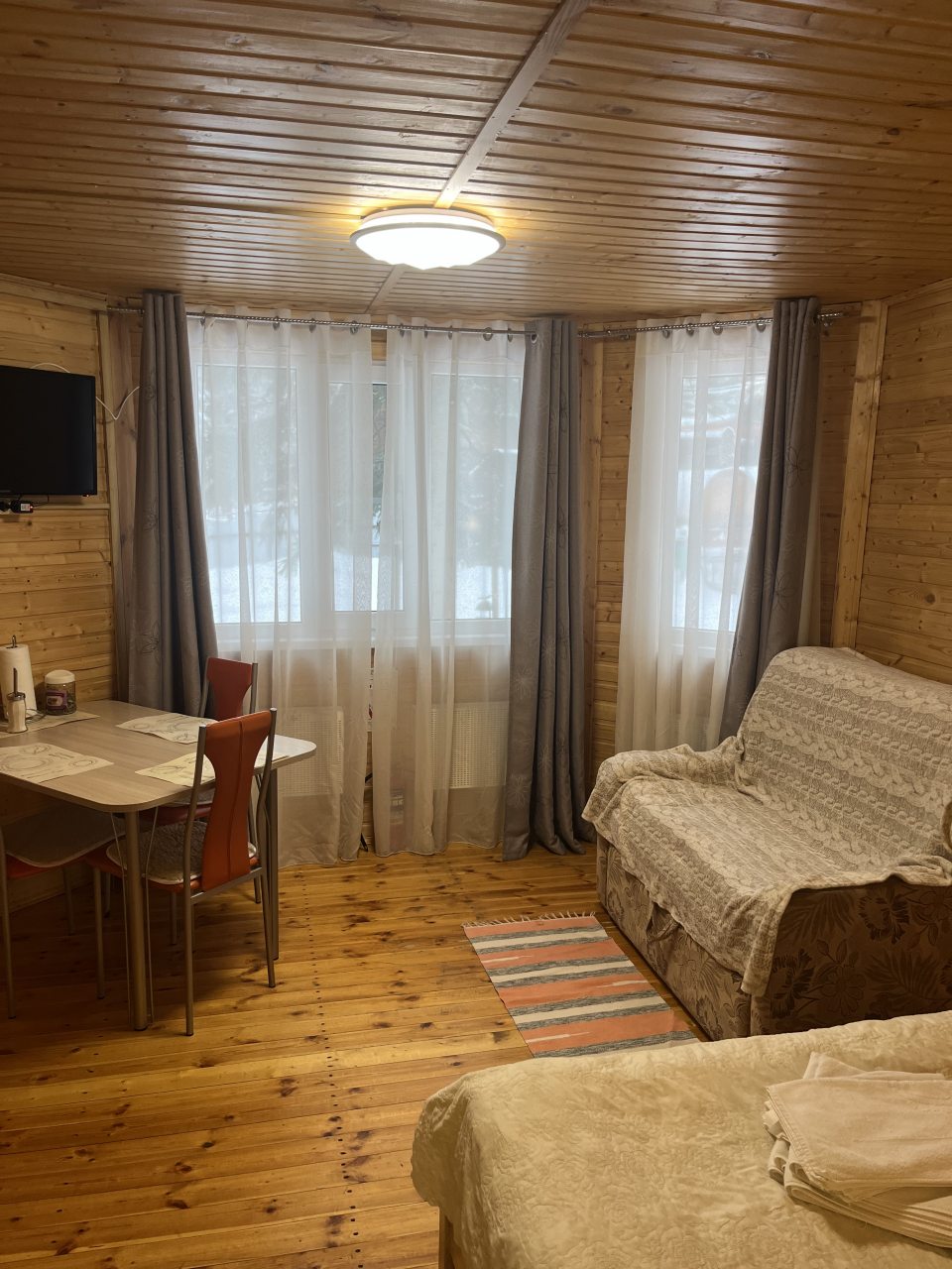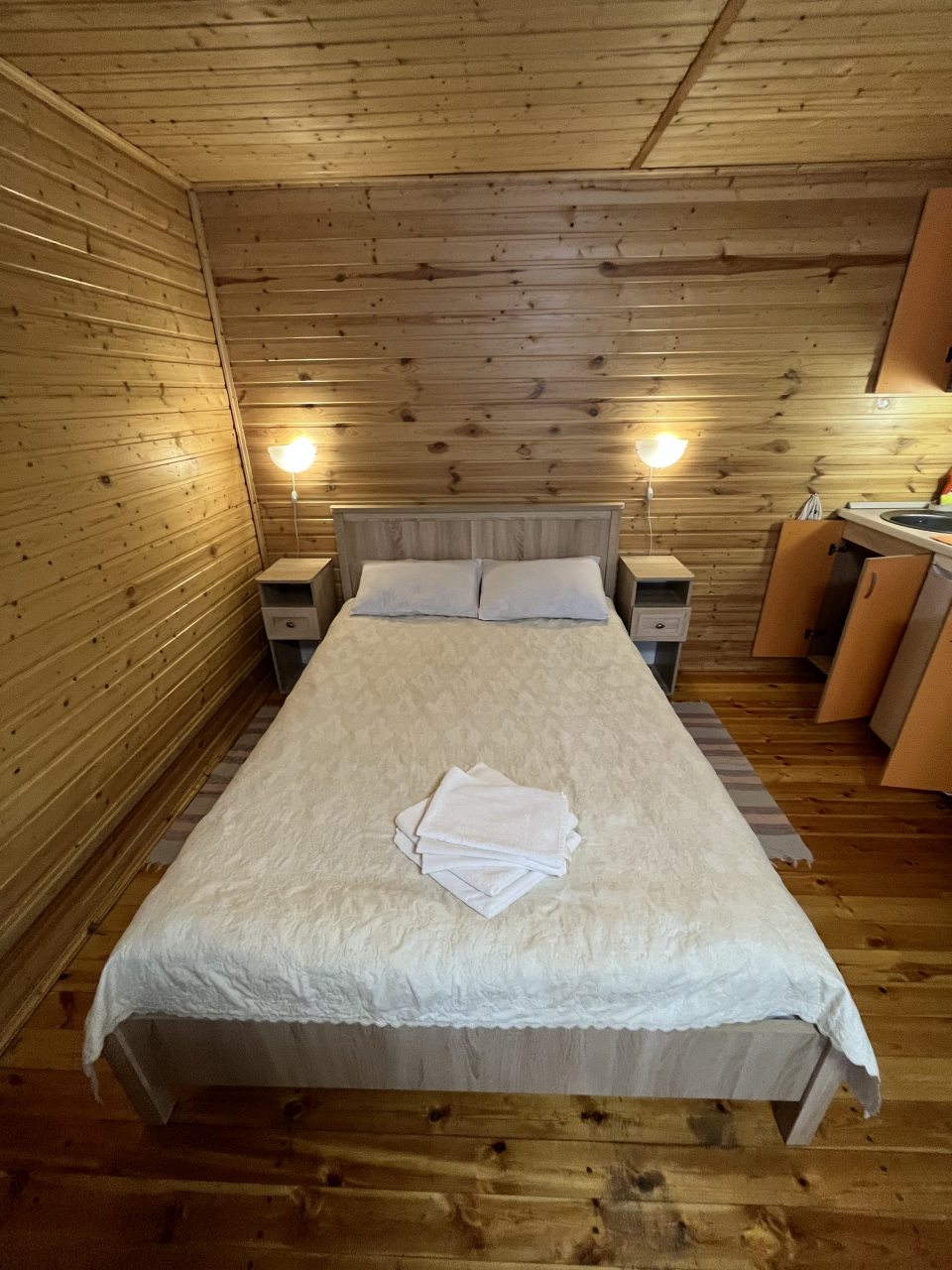 С детьми и мужем мы брали для отдыха домик на двоих. Внутри он достаточно уютный, без затхлых запахов, чистый. Сырости не наблюдалось, наоборот – свежесть и приятная чистота. Шкаф для вещей вместительный присутствует в комнате, телевизор есть. На улице облагорожена территория, есть мангал. Для игр место тоже организовано. Ну и конечно воздух – он потрясающий и незабываемый!