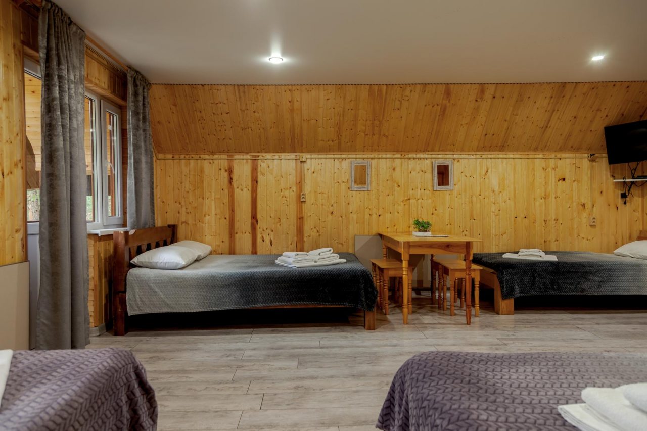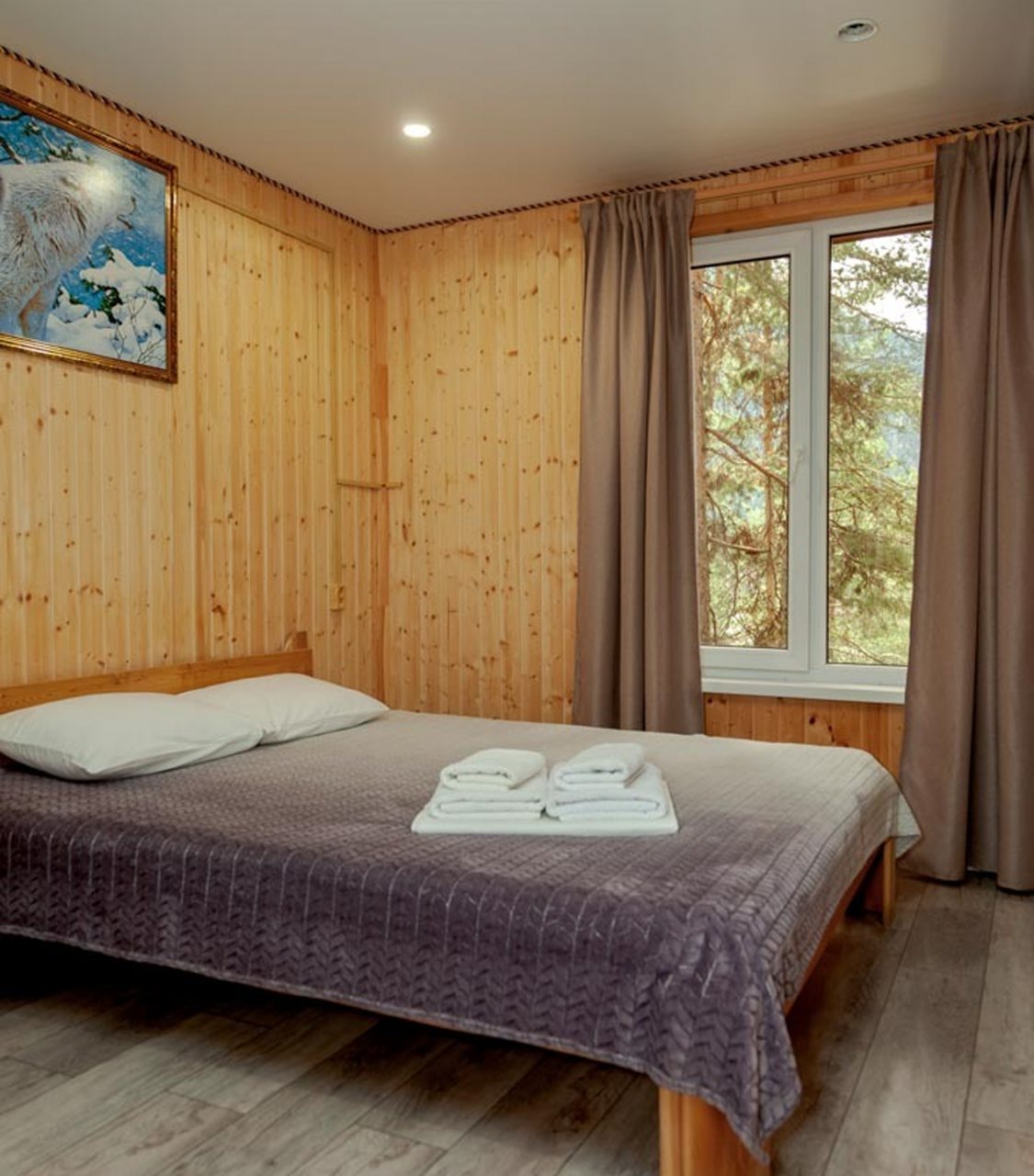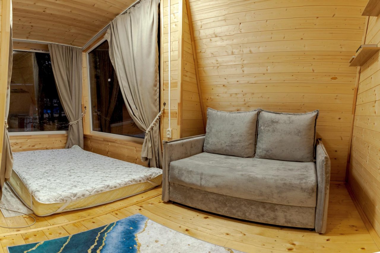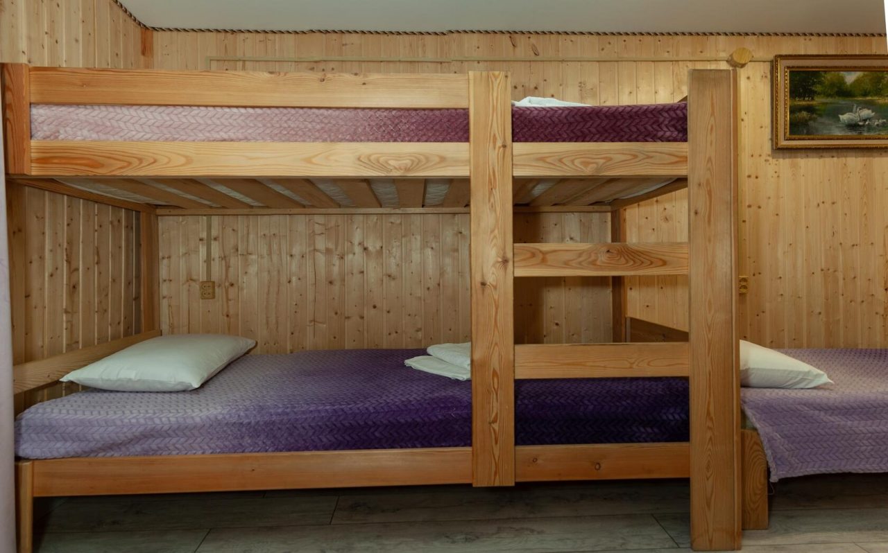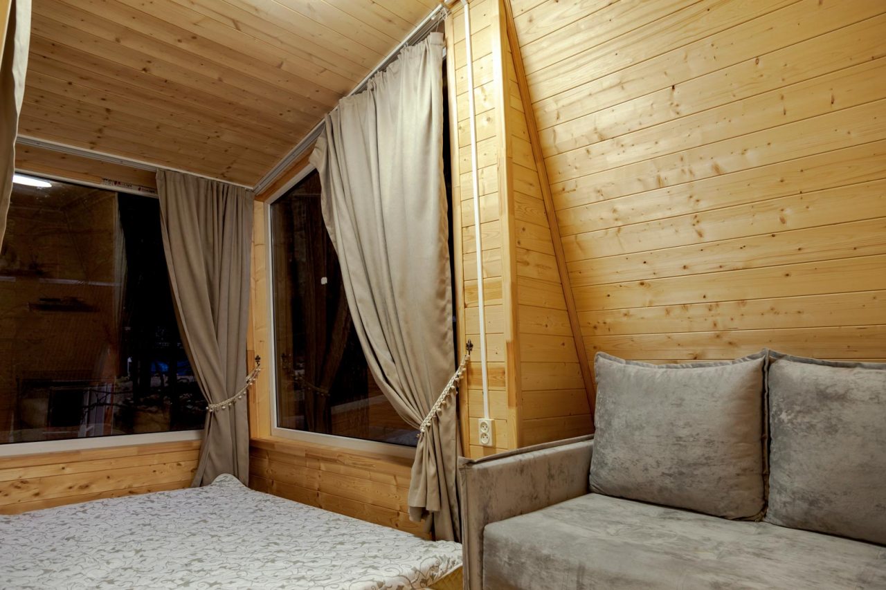 Неплохая база отдыха, новая, все с нуля, похоже. Благодаря этому постельное, полотенца все свежее, не застиранное. Обстановка в домике простая, ничего лишнего, есть кровати деревянные, стол с лавками, мебель, ванная. Готовить еду можно на открытом огне, на мангале. Кушать лучше на улице с видом на лес.