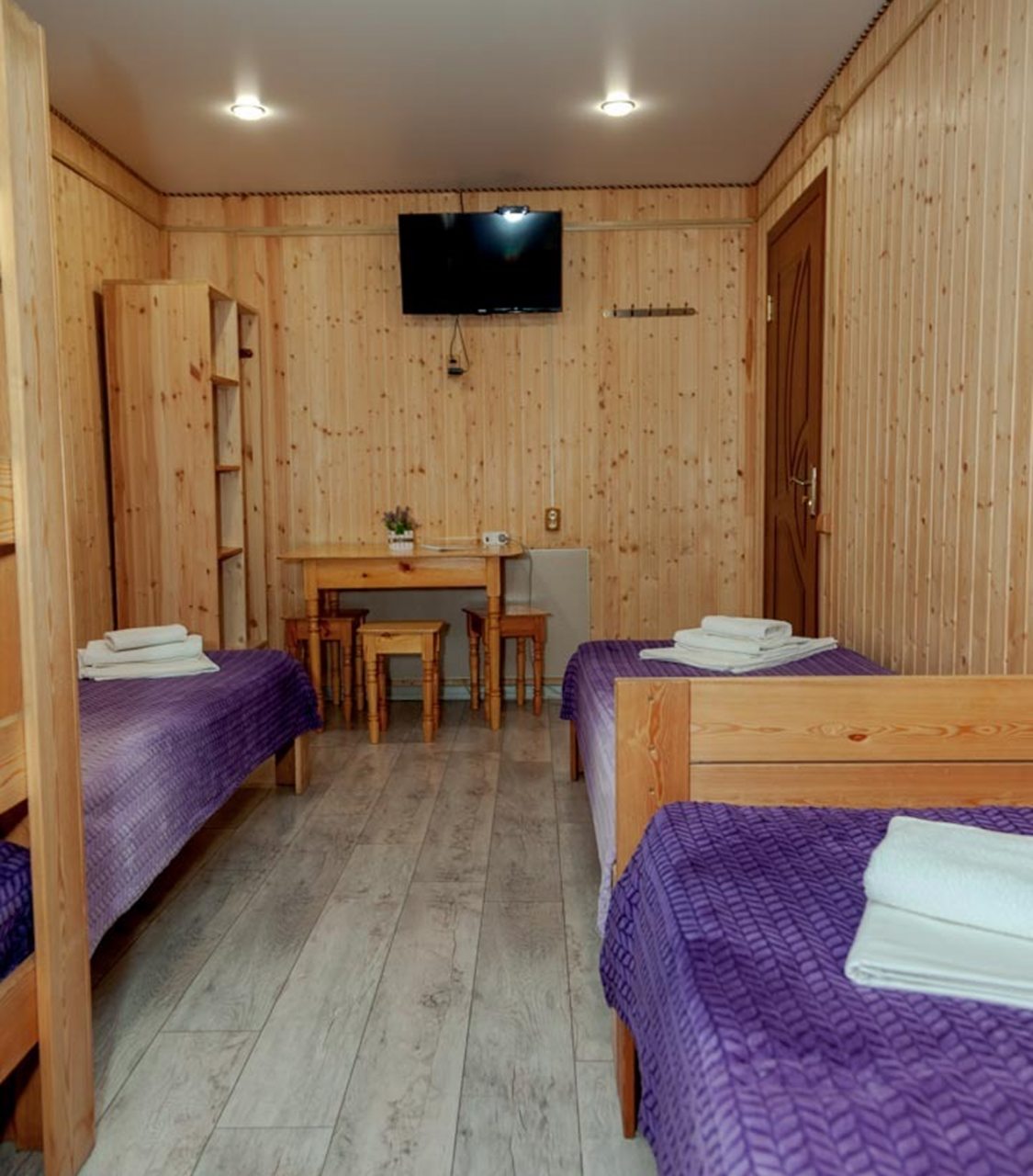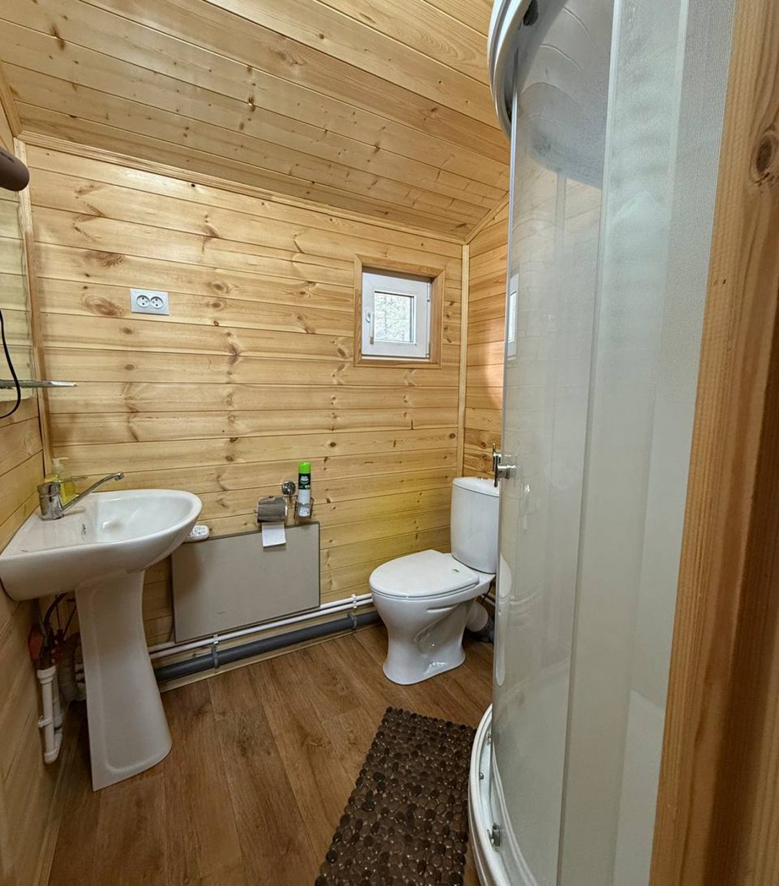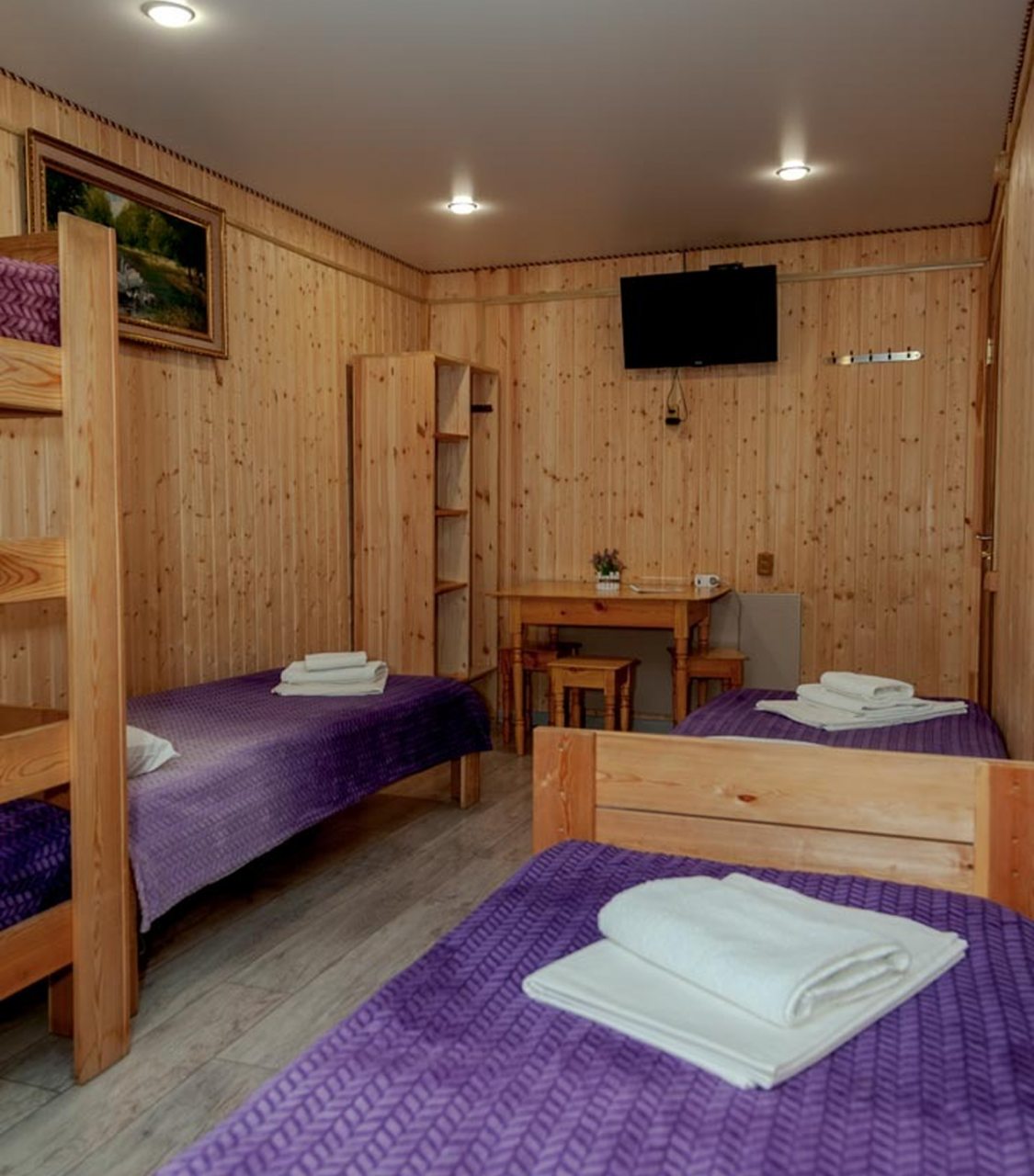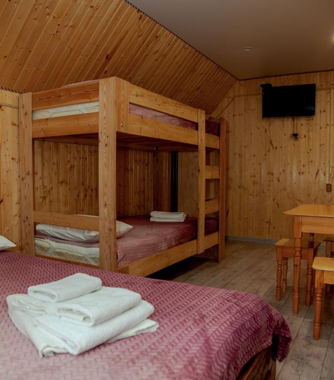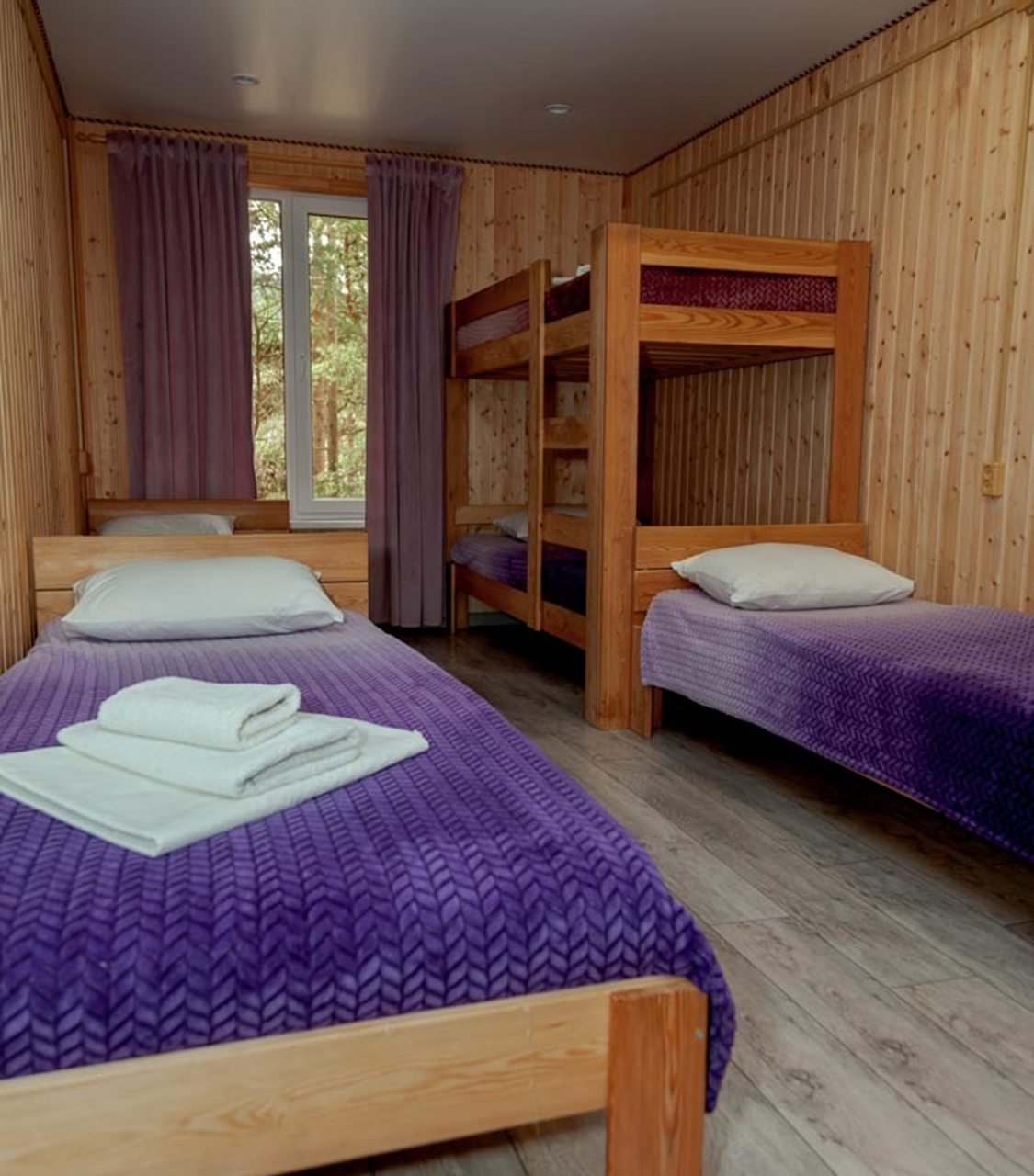 Неплохая база отдыха, новая, все с нуля, похоже. Благодаря этому постельное, полотенца все свежее, не застиранное. Обстановка в домике простая, ничего лишнего, есть кровати деревянные, стол с лавками, мебель, ванная. Готовить еду можно на открытом огне, на мангале. Кушать лучше на улице с видом на лес.