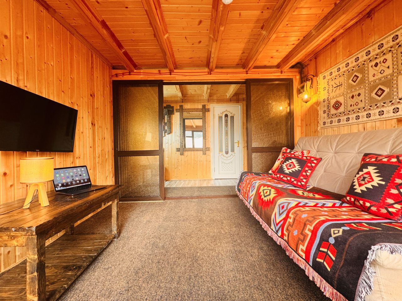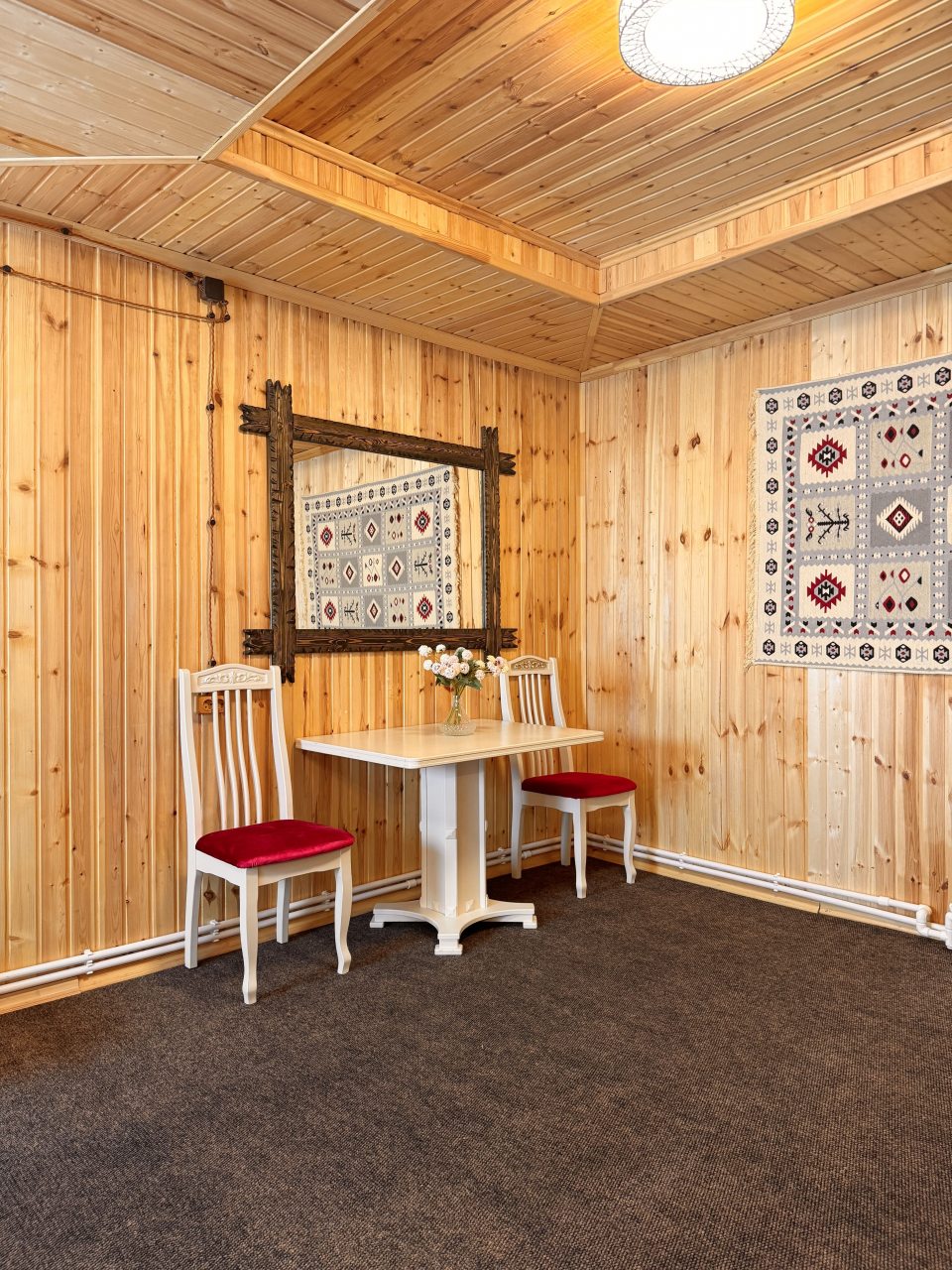 Отдыхали осенью, температура на улице была +16..+10, в комнате включали дуйчик, чтобы прогревать комнату.