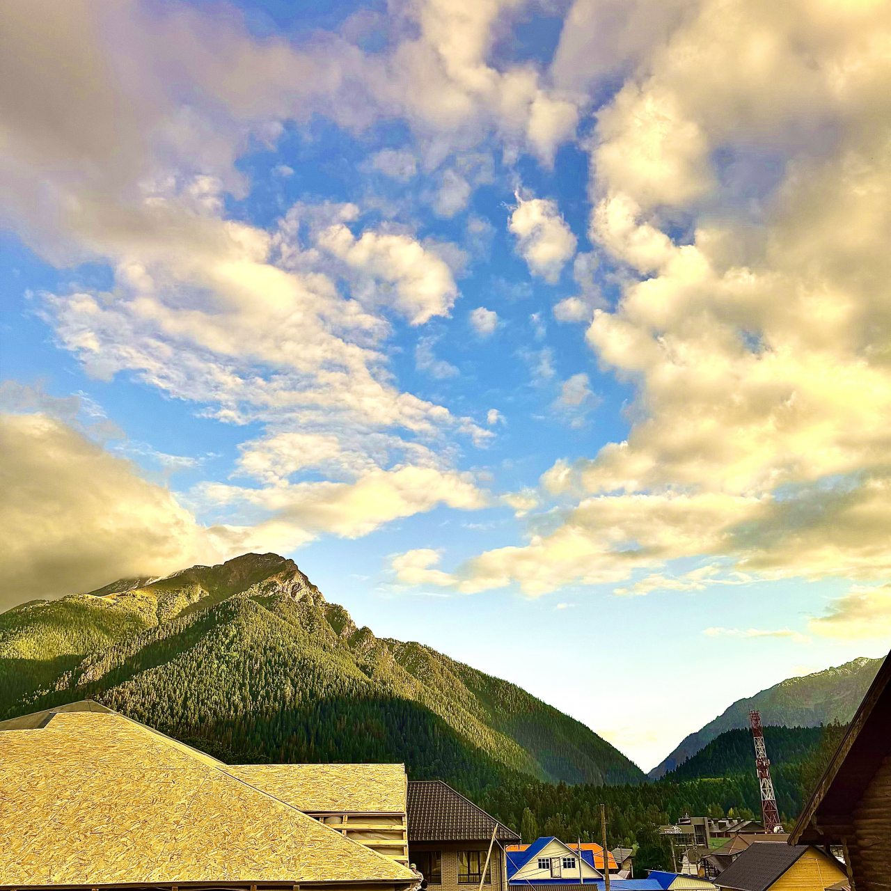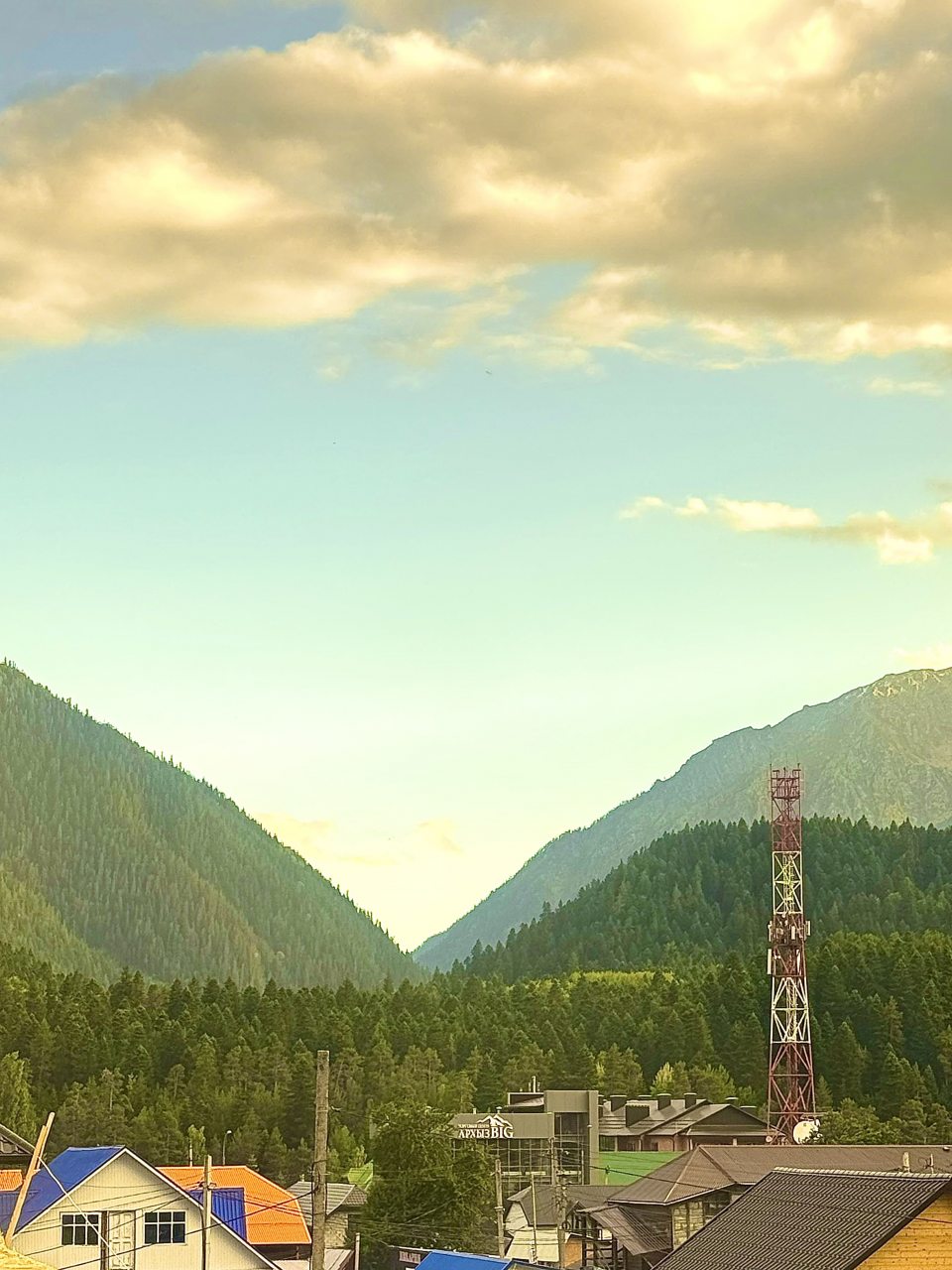 Расположение отеля - в центре посёлка, все находятся рядом- кафе, пункты проката, магазины, рыночек с сувенирами...Сотрудники очень отзывчивые, все просьбы были удовлетворены. На ресепшене можно сразу приобрести ски-пассы по цене сайта, не выставая очереди в кассах. На первом этаже можно попить чайкофе бесплатно, стоят чайники, чай, банка кофе. Кафе здесь же. Из еды очень понравилась шорпа, хинкали и плов)
