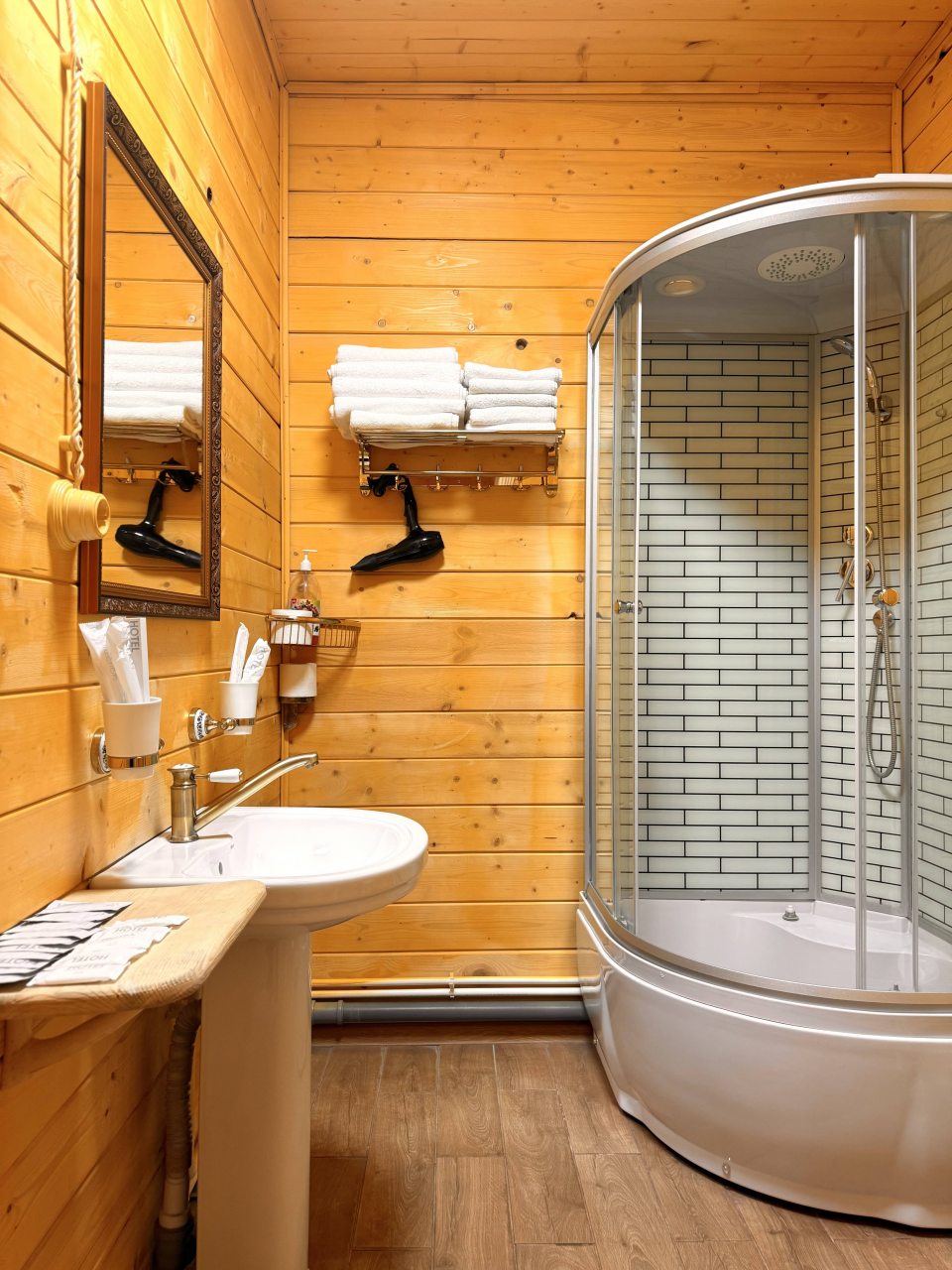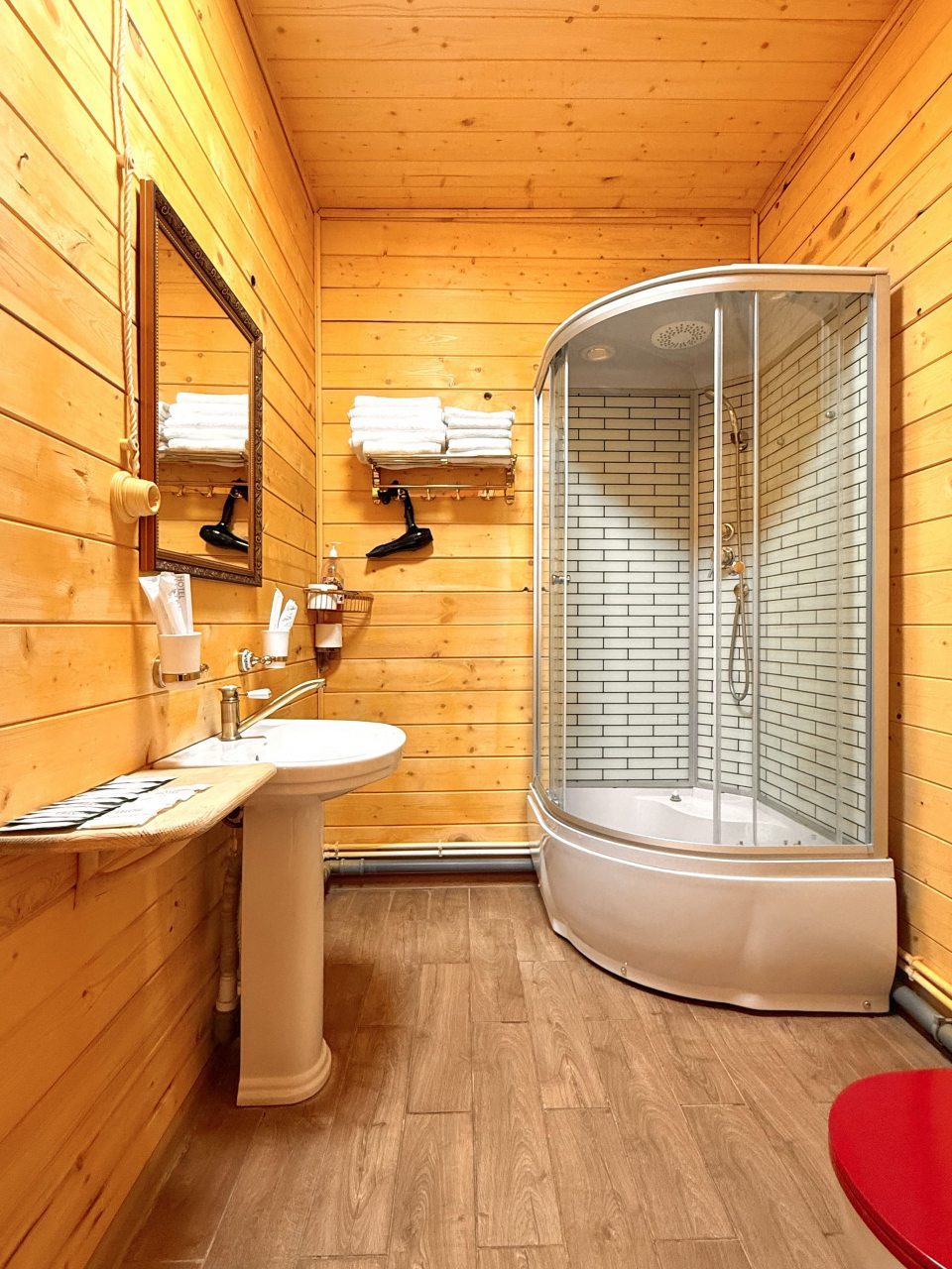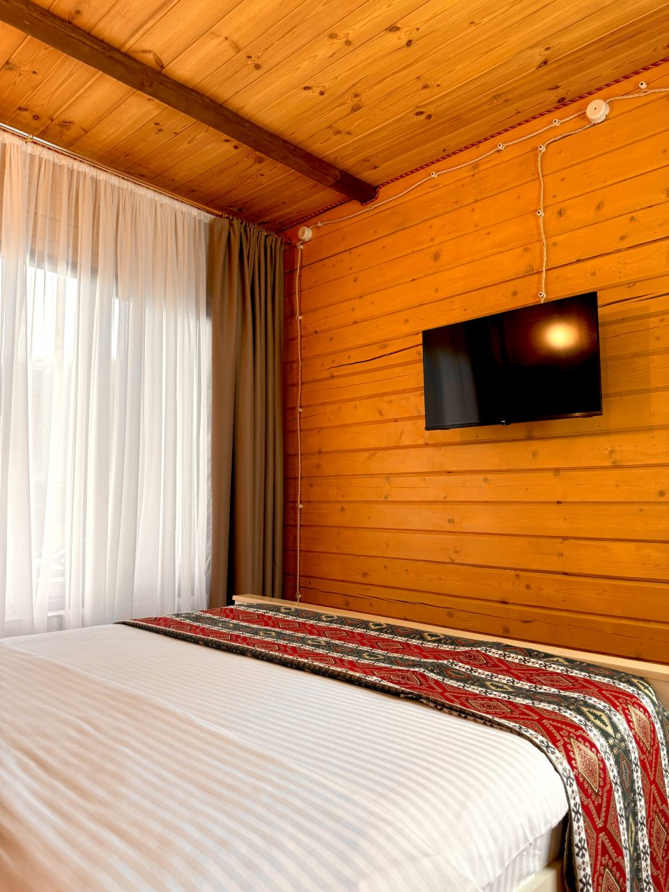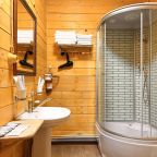 Территория красивая, ухоженная. Всё из дерева, вкусно пахло в номере, номер хорошенький, уютный.