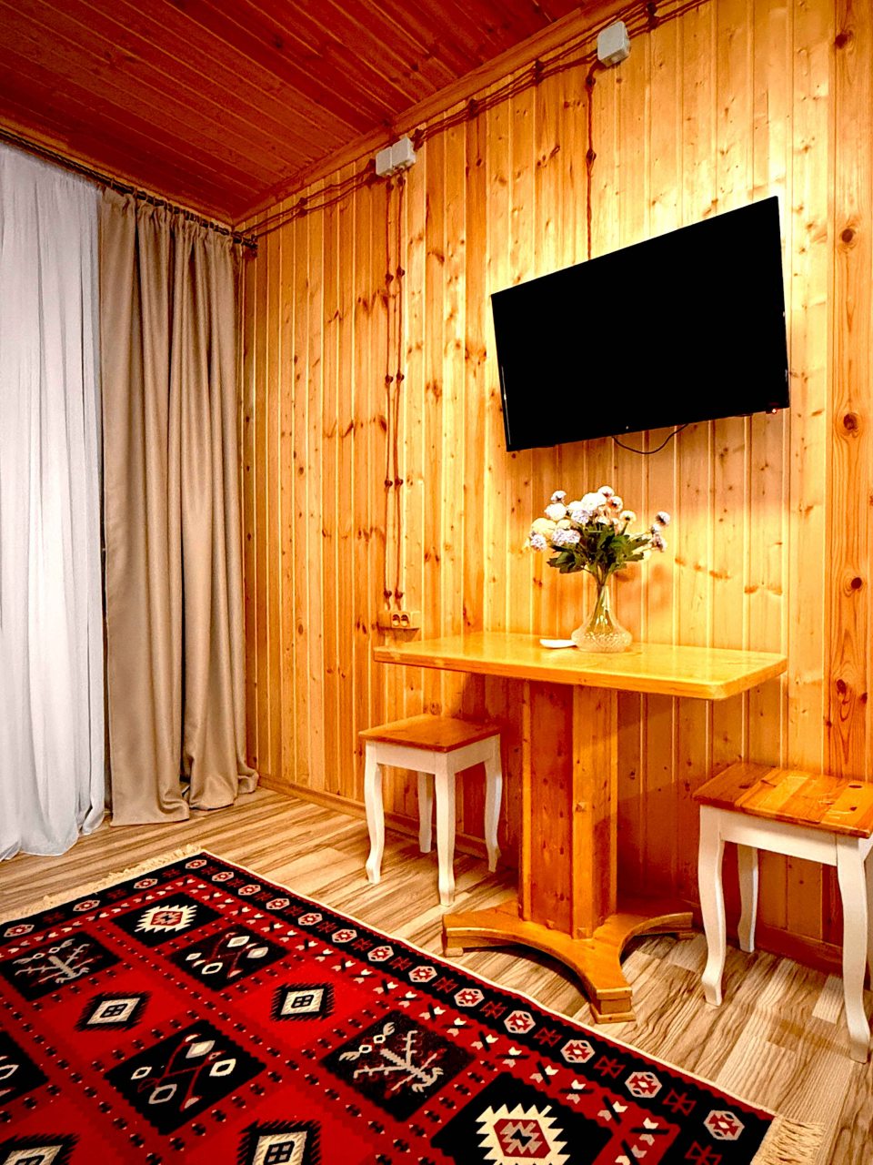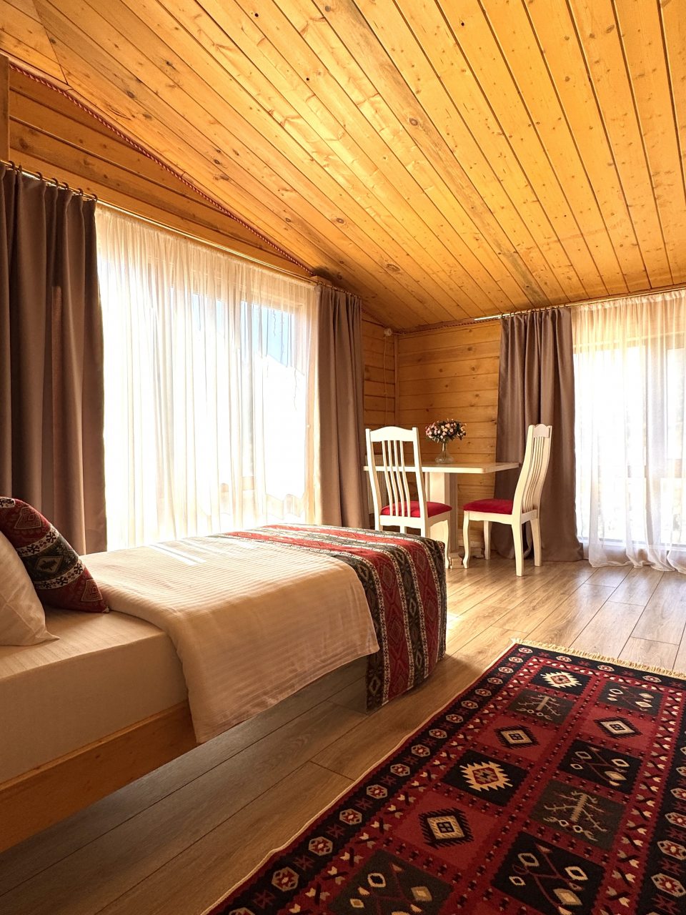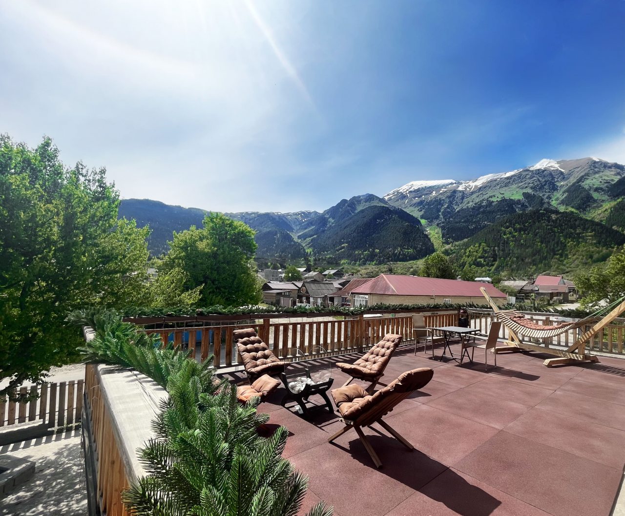 Это прекрасный отель! При желании можно заказать в отеле завтраки, обеды. Заказывали завтраки, еда здесь просто потрясающая! Номера просторные, все необходимое есть! Виды нереальные на горы!!! Хозяева очень отзывчивые. Отель однозначно рекомендую!