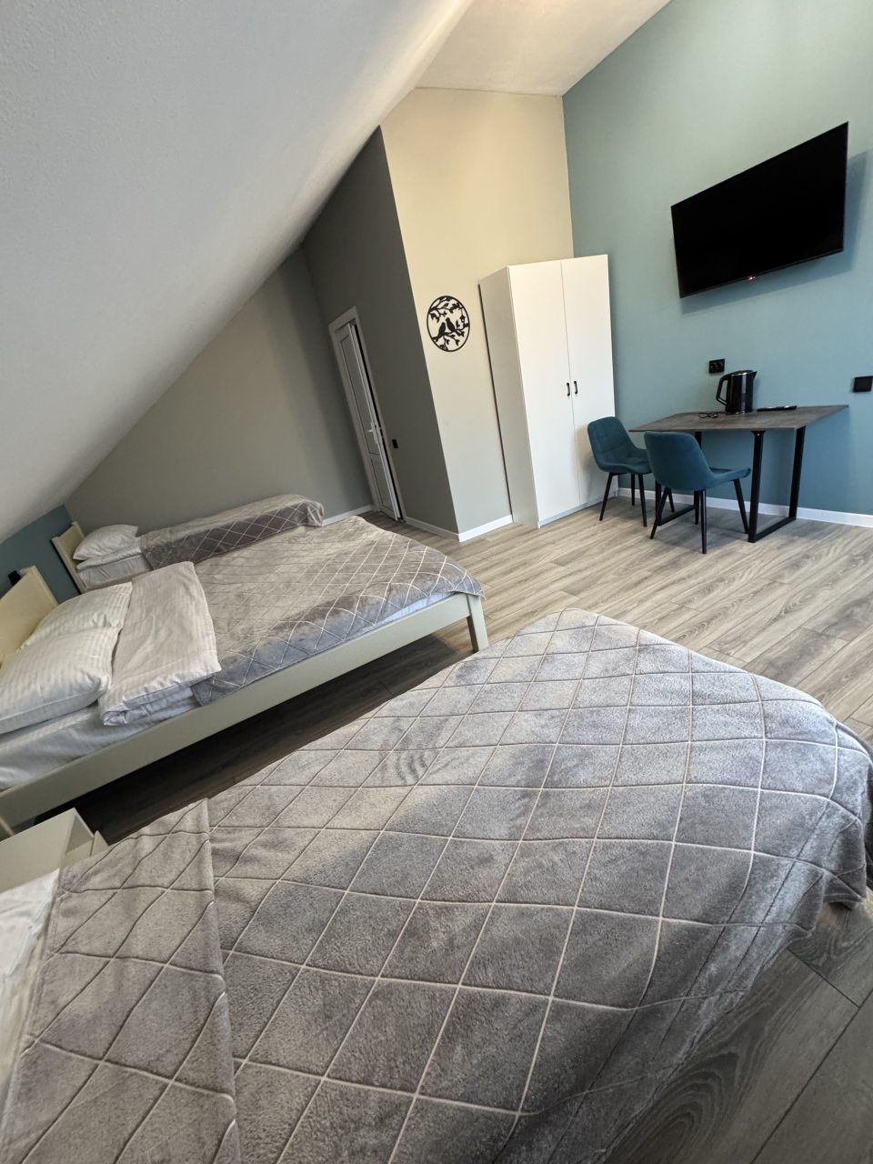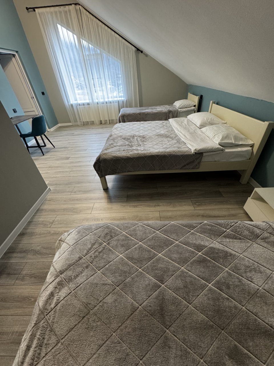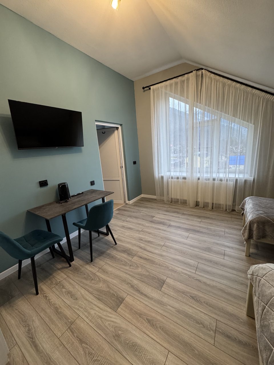 Из недостатков: нет моб.связи (наверно везде в посёлке), в отеле работает вай фай, нет стойки ресепшн, нет уборки номеров, мы проживали 3 дня, никто не заходил в номер. Нет туалетной бумаги и мусорной корзины в комнате.
