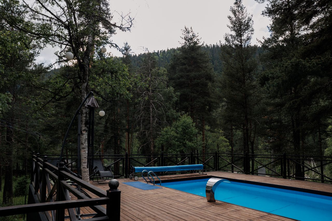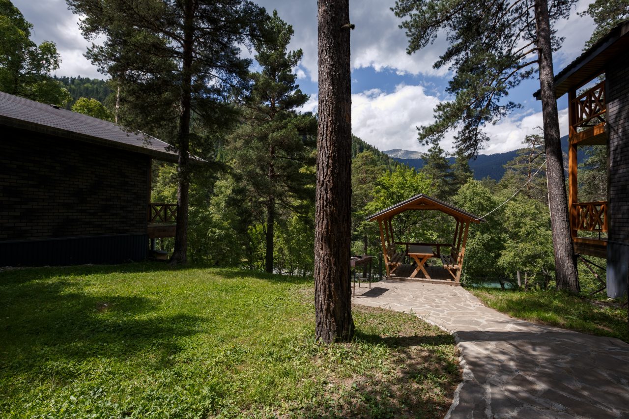 Отель в отличной локации. Из развлечений, кроме природы, еще есть банька, караоке, бассейн, можно заказать кальян. Есть экскурсии на водопады, на квадроциклах – советую заказать. Качели, беседки – просторно и удобно. В номере все предусмотрено, гостям удобно. Ресторан со вкусными завтраками.
