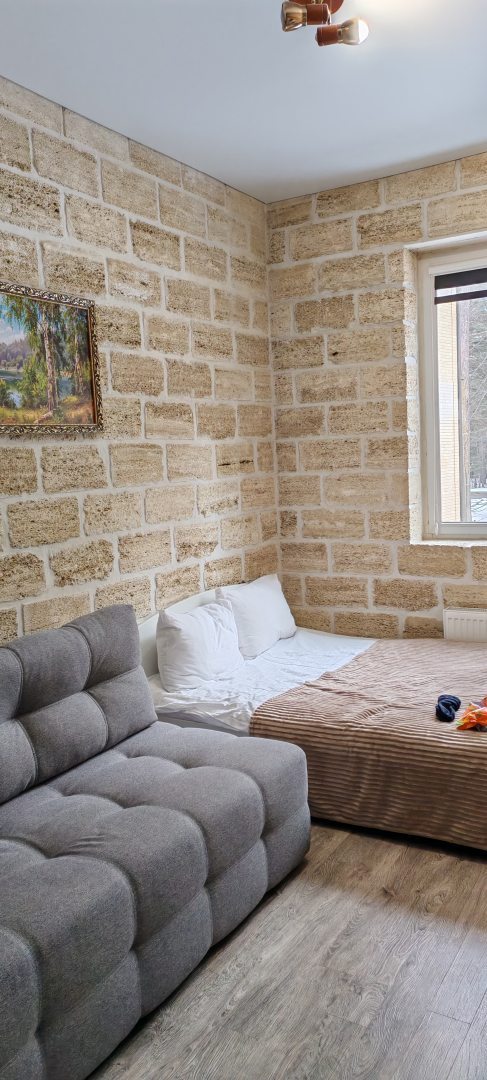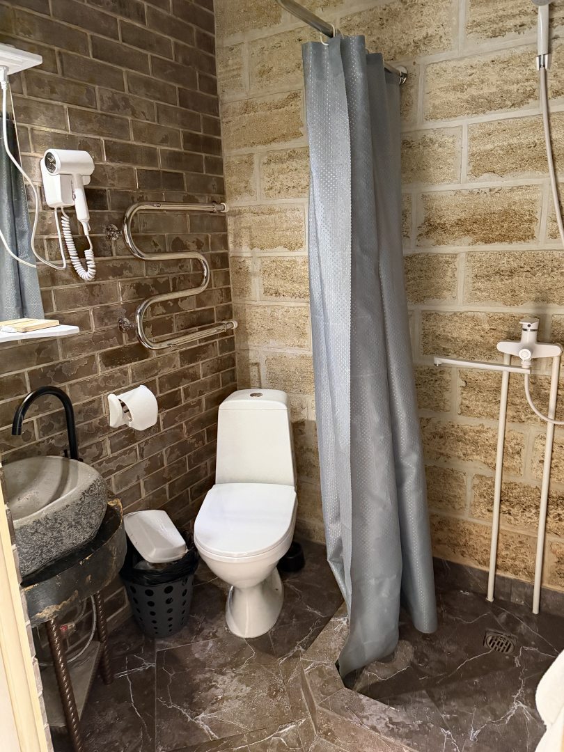 Из недостатков: не очень уютное место - это как бы дешевое дополнение к Отелю (ресепшен находится в нем). А Благодать стоит прямо на парковке. Не доделаны ступеньки, вокруг практически стройка. Ну и внутри экономили на чем могли - хотя это даже прикольно - блоки и кирпичи без отделки. Не понравились двери со стеклом особенно входная - всю ночь мешает свет из коридора. Ну и столик хоть маленький не помешает - завтракали на подоконнике)))