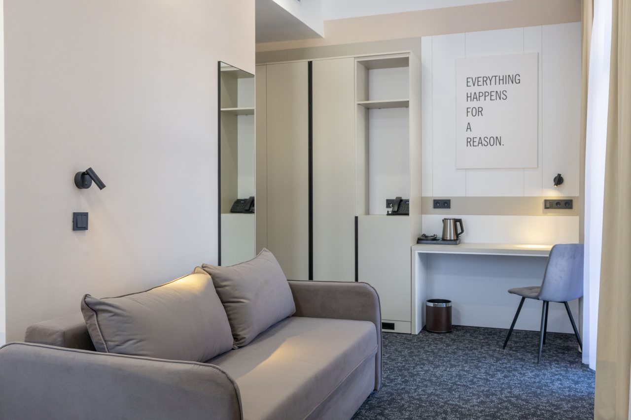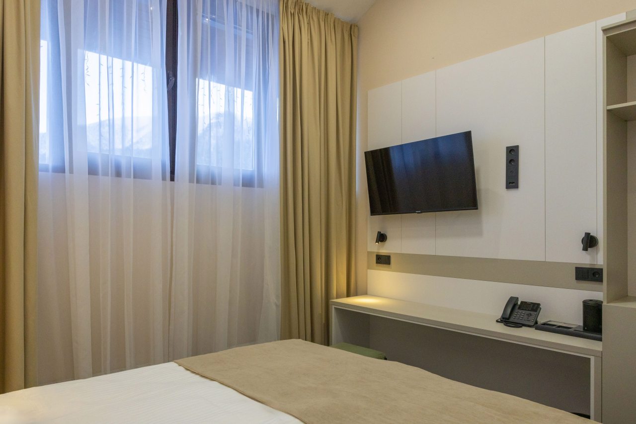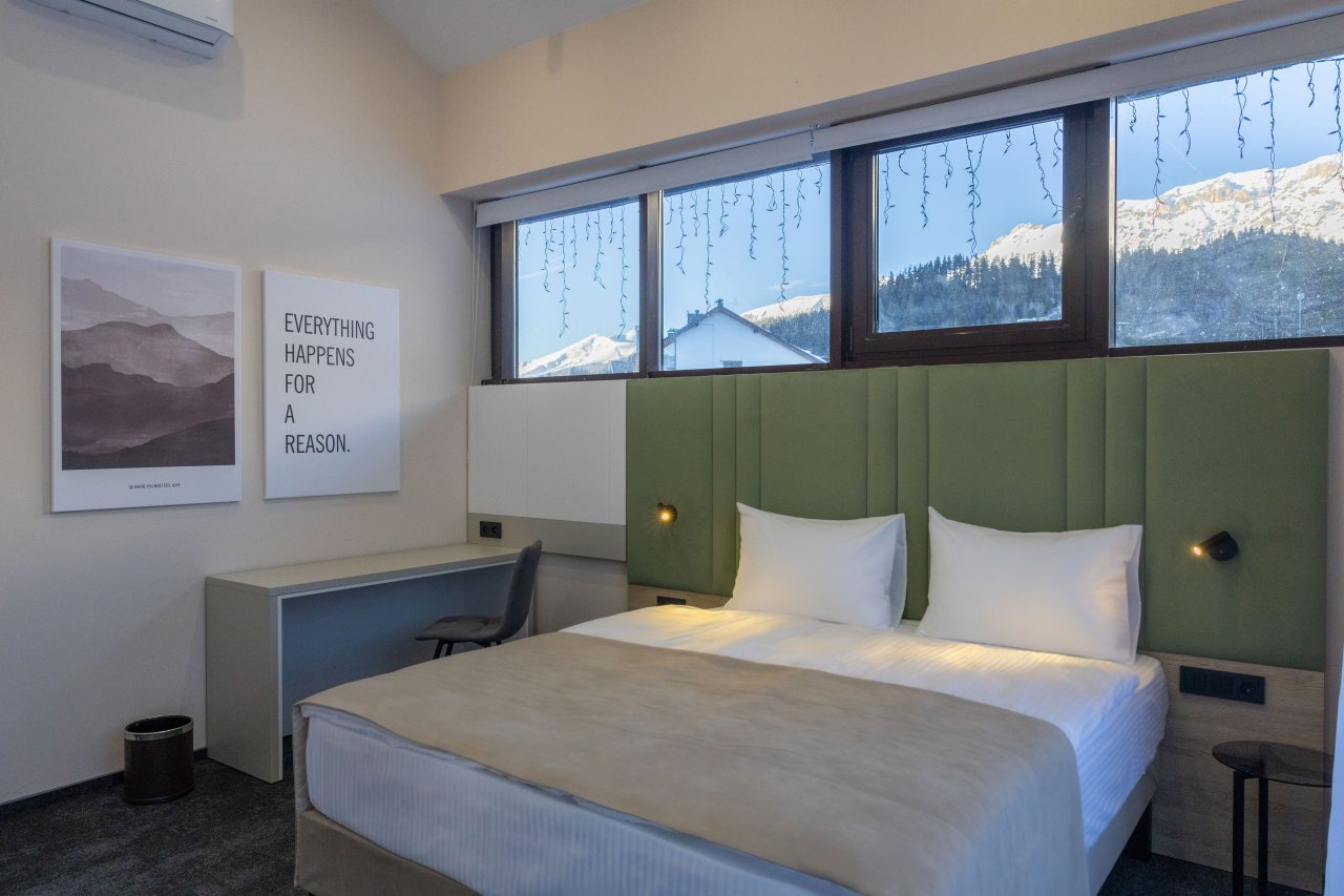 Отель очень хороший, номер чистый, комфортный, в номере есть все для проживания. Расположение отеля очень хорошее, канатные дороги в шаговой доступности, магазины, кафе все рядом. Советую для проживания !