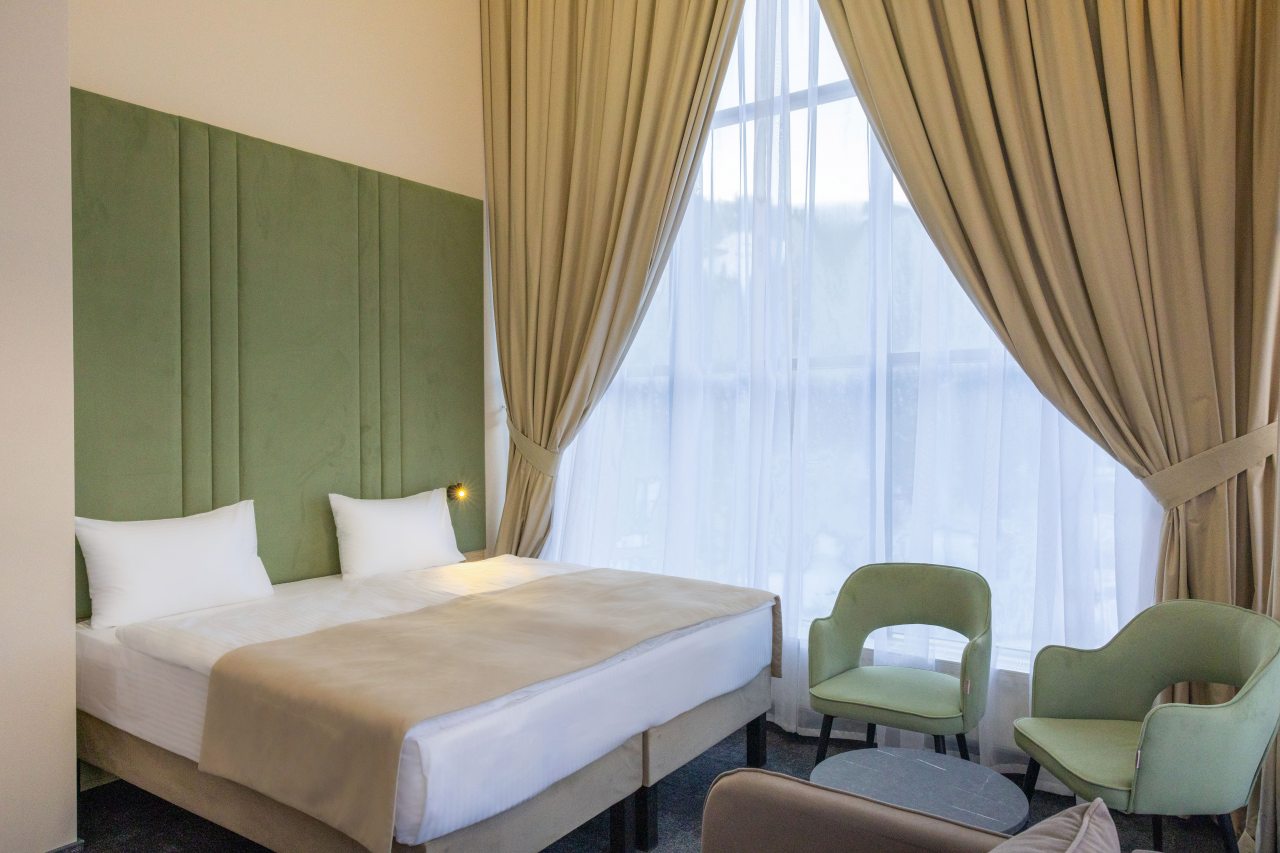 Прекрасный комфортабельный отель в горах! Чудесно удалось здесь отдохнуть, все благодаря великолепному сервису. Проживали с супругом в полулюксе, все понравилось: чисто, приятный современный интерьер, удобная кровать, есть все для комфортного отдыха. Питание порадовало - вкусно, разнообразно и самое главное - полезная простая пища без фастфуда. Овощи, фрукты, все свежее. Несмотря на летний сезон, гостей было много, но это никак не повлияло на наш отдых. Также есть сауна, тренажерный зал, детская комната для малышей и много других услуг.