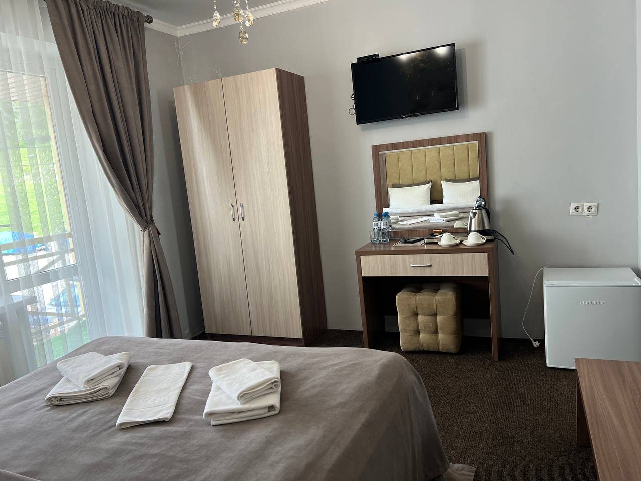 Очень чистый, опрятный отель. Обслуживание душевное, девочки откликаются сразу и расскажут, покажут, найдут.) Завтрак вкусный, сытный . Виды—главное преимущество отеля, потрясающий, панорамный вид , как с ресторана, так и с любой из двух релакс-площадок отеля. На площадках - мангальная зона с Биседкой, столики с зонтами, качели. Все для комфортного отдыха организовано-молодцы