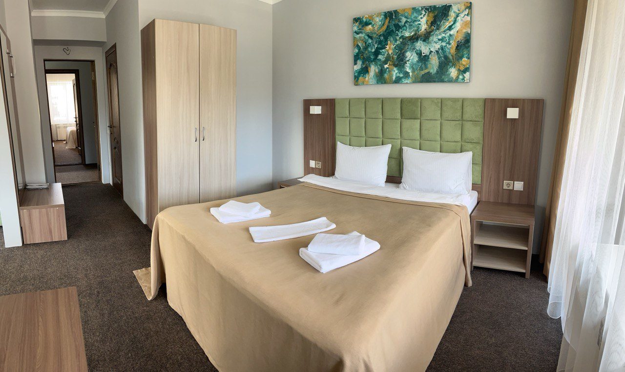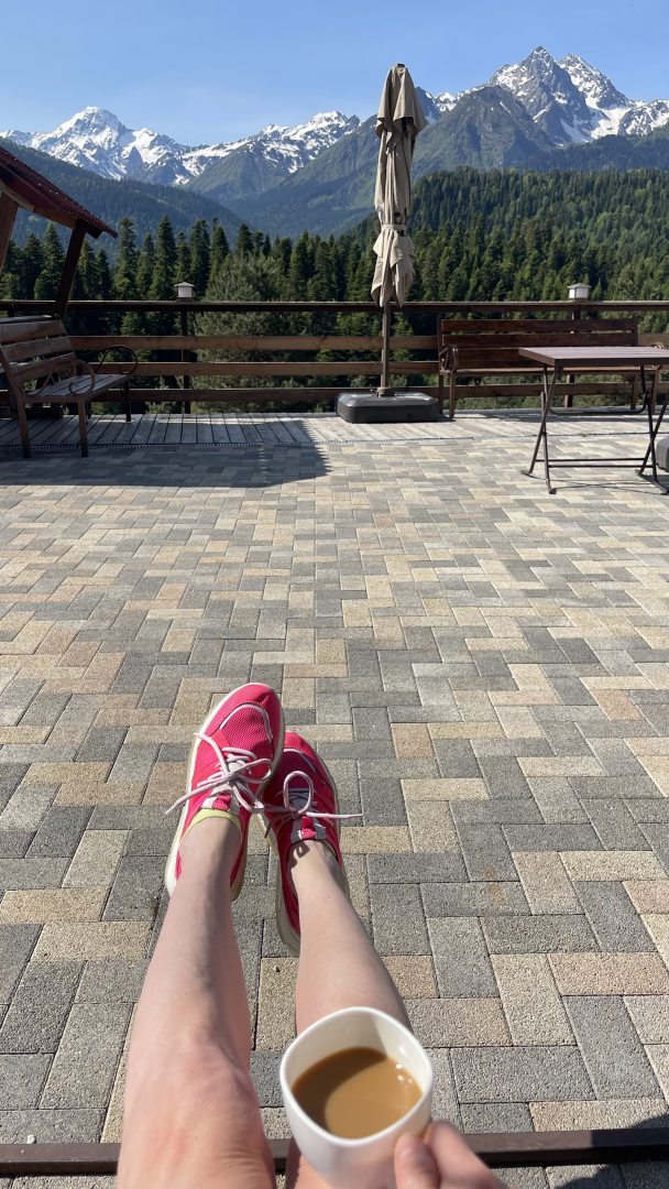 Расположение отличное, недалеко от канатки, есть трансфер, в пробках не стояли. Завтрак хороший. Сногсшибательный вид из панорамного окна столовой. Завтрак с видом на горы, залитые солнцем - незабываемо. Цена-качество устроили вполне.