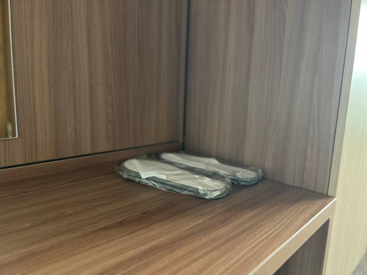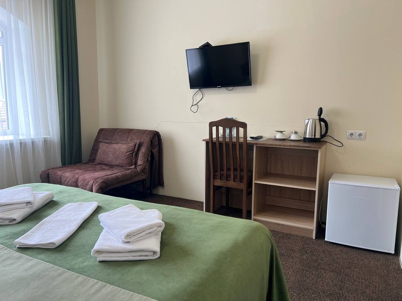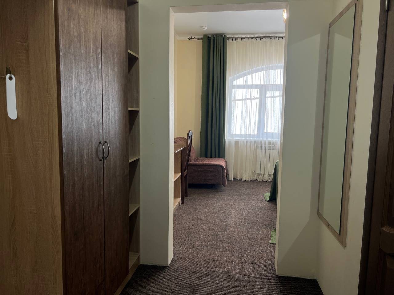 Из недостатков: входная дверь в номер не глухая, а со стеклом. Стекло, хоть и матовое, но движение в номере видно и есть прозрачные полоски. Ночью проникает свет из коридора. Приходилось жить с открытой дверью шкафа, перекрывали ею входную дверь, чтобы чувствовать себя комфортно. Но это только в нашем номере, в остальных номерах двери глухие. Уборка по просьбе.