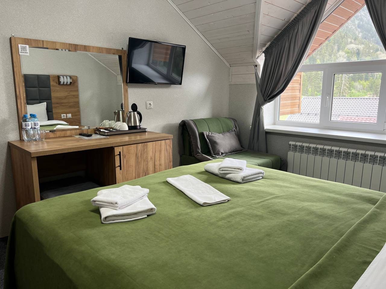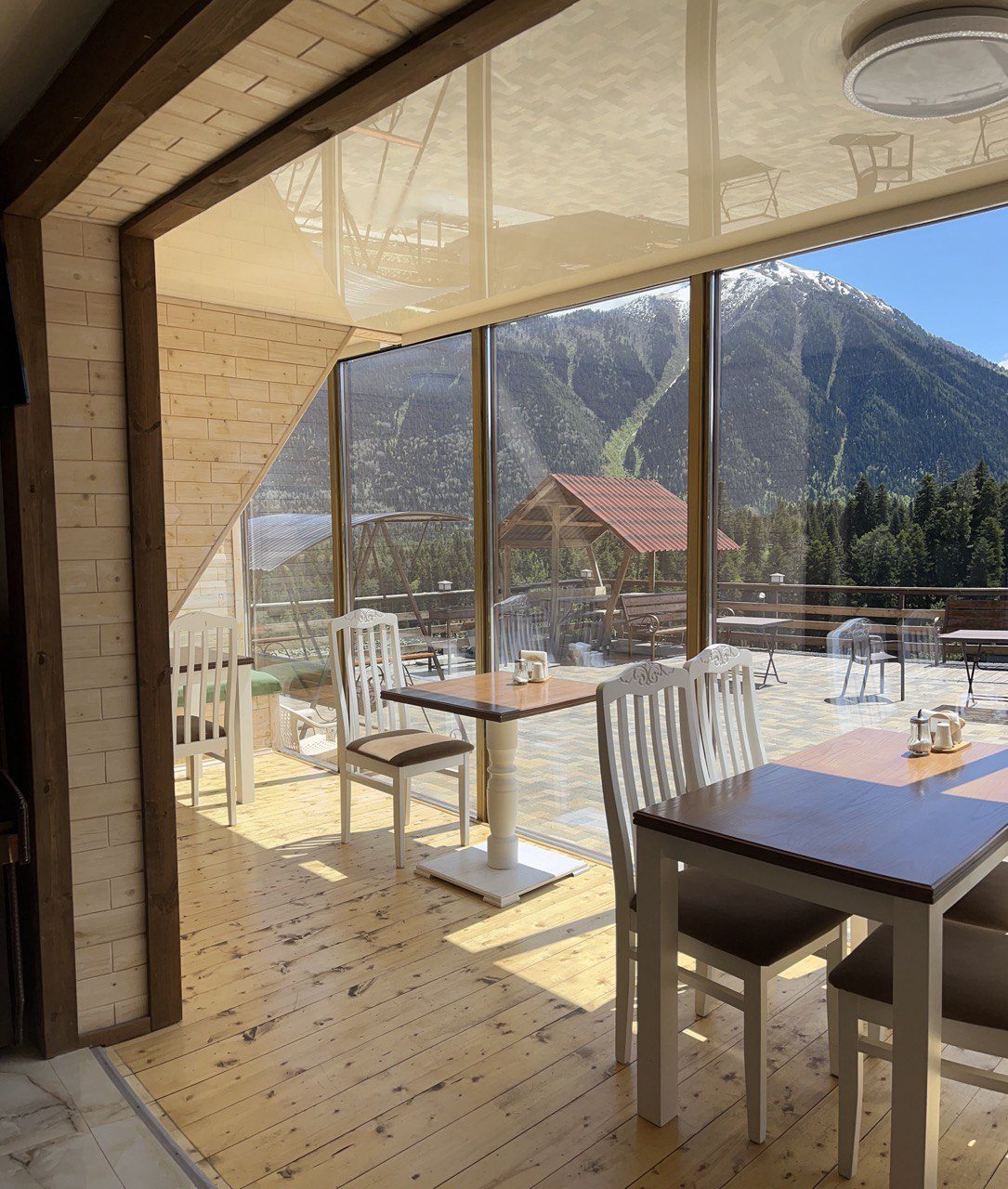 Проживали в отеле с 09 по 14 марта 2025 г. Приезжаем в Архыз три года подряд к горно-лыжному сезону. Наконе-то нашли идеальное место куда хочется вернутся в следующий раз. Отель расположен между ГЛК и поселком , до ГЛК 2,5 км (5 минут и мы там). Шикарные виды, прекрасный персонал, уборка в номере по требованию. Баня -огонь! В отеле есть трансфер на ГЛК туда и обратно. Были на своей машине, поэтому транспортных проблем не было (т.е магазины, кафе и.т.д. либо на ГЛК либо в поселке). Питались в основном в ресторанчике при отеле. Было очень вкусно. Бюджет средний.