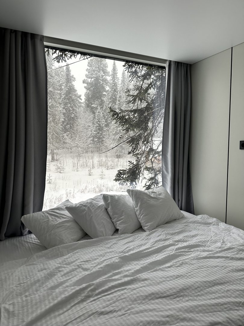 Домик очень понравился, теплый, чистый, уютный! А за окном просто сказка! Администратор общительная, по любым вопросам все подскажет!