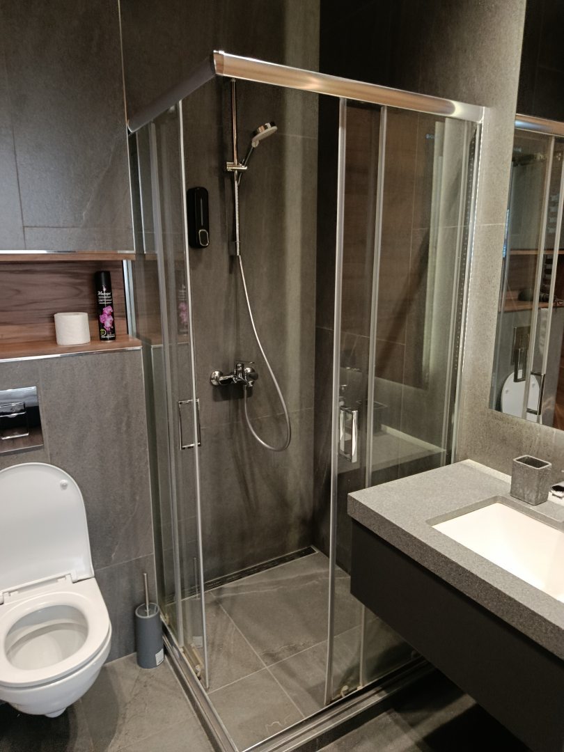 Из недостатков: в душе в диспенсере было пусто, совсем ни капли, мы жили двое суток, на второй день нам не положили ни шампунь, ни гель для душа, вообще ничего. И хорошо бы в номер добавить какой-нибудь коврик для ботинок, мы поставили свои грязные ботинки на пакеты. И маленький пуфик около двери, чтобы обуваться сидя.