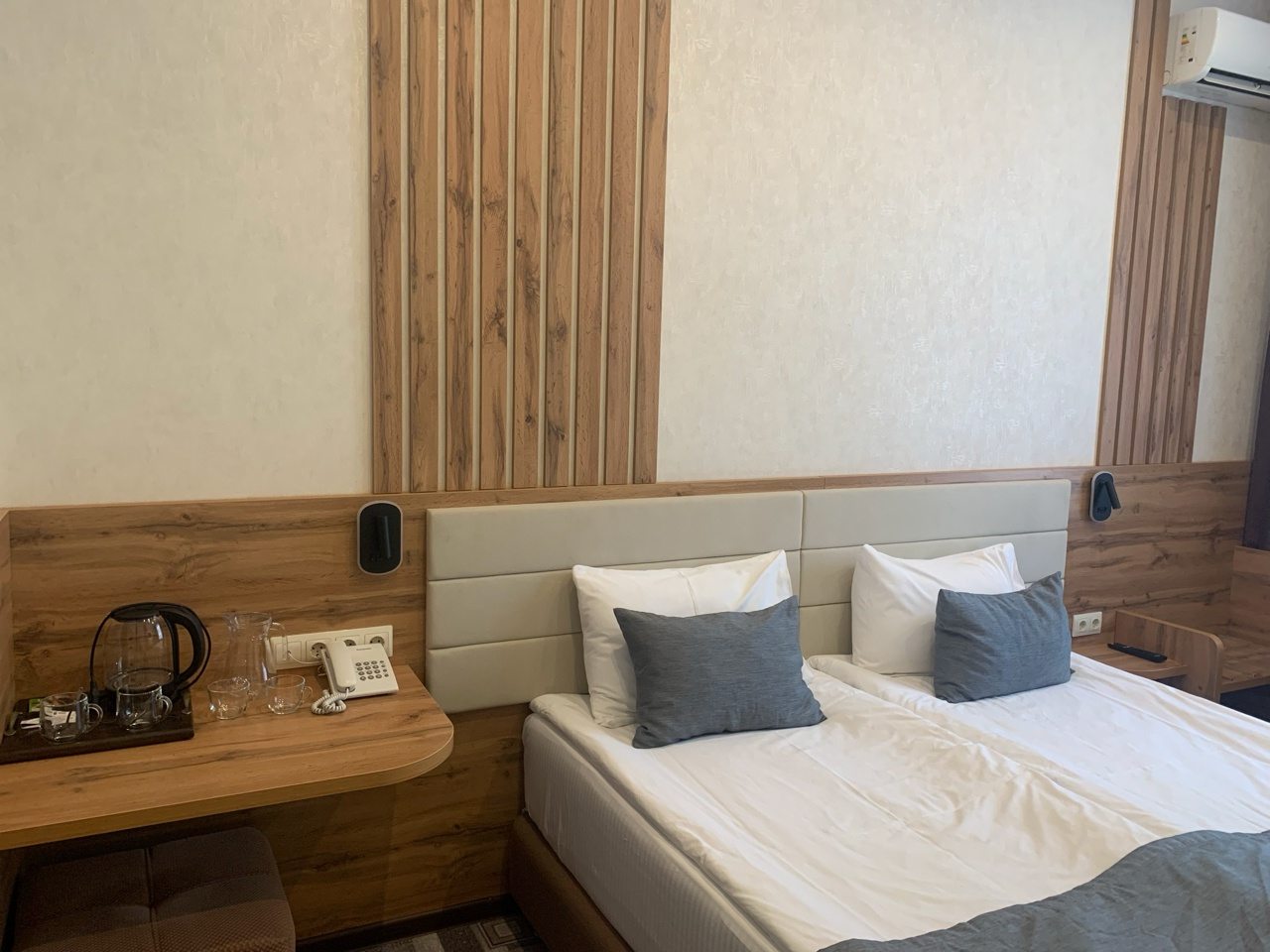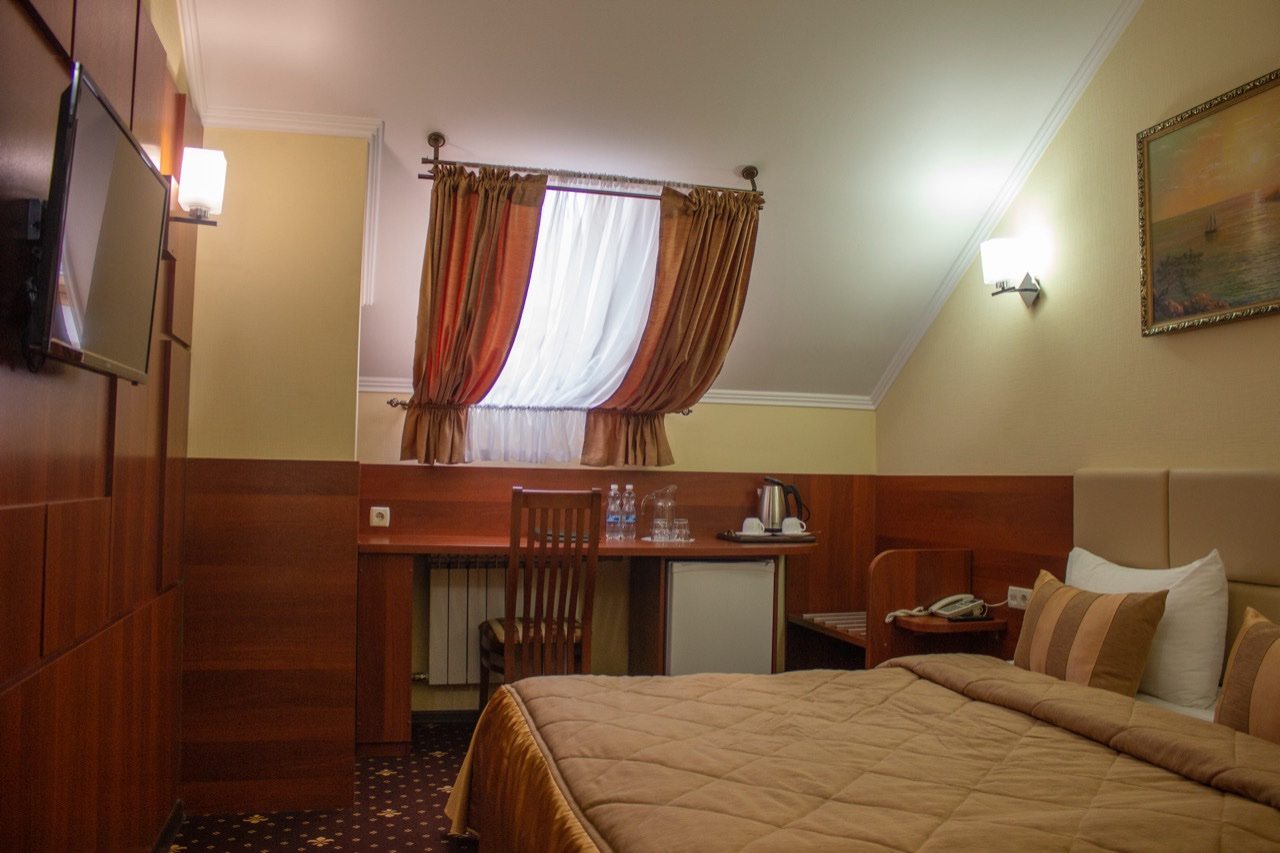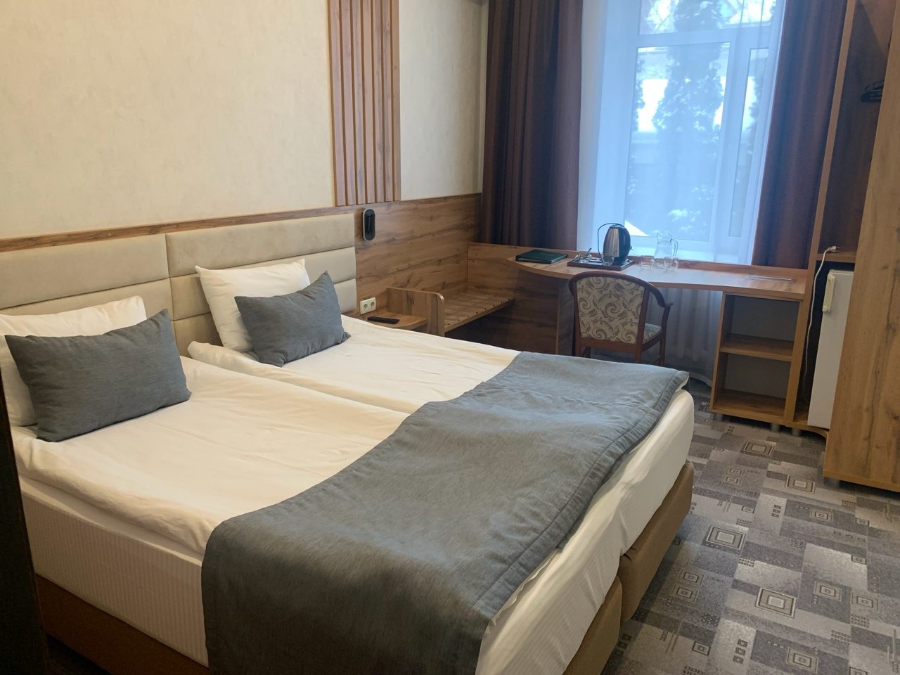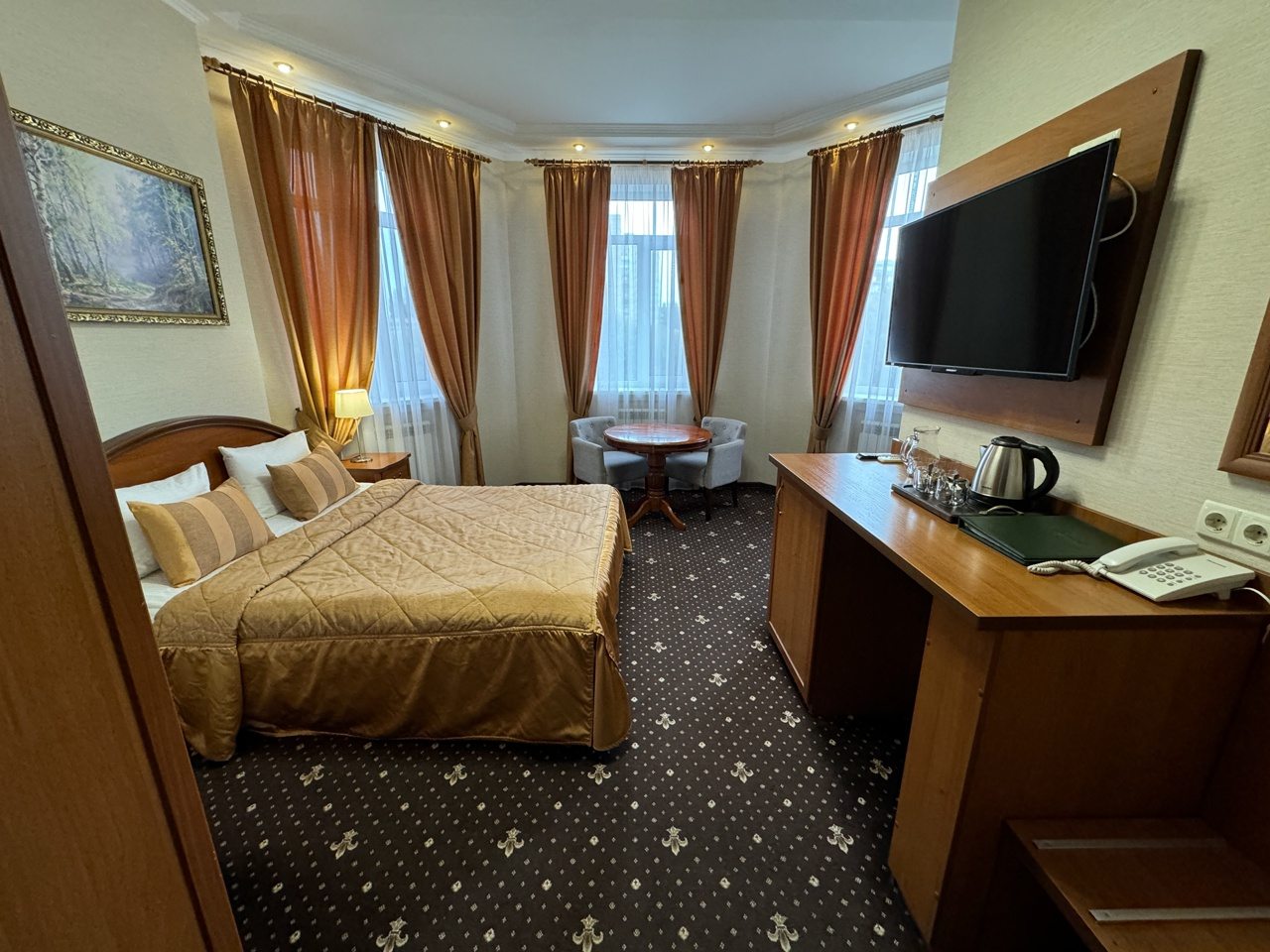 Хорошая гостиница с комфортными условиями для проживания. Находится отель в самом центре города. Несмотря на это, внутри тишина, кругом красивая природа. Поселили нас в уютный номер класса стандарт. Нам все понравилось, как по уровню сервиса, так и цене. Кушать ходили в кафе. Все вкусно