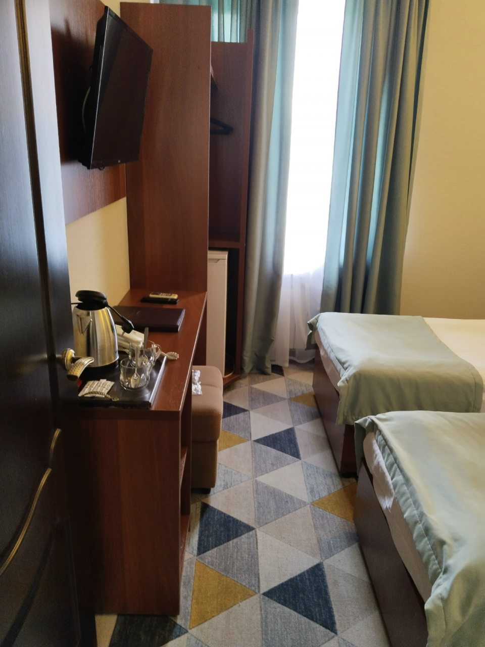 Регистрация на сайте и в гостинице заняла пять минут. В номере было две спальни, разместились с удобством. Был холодильник и чайные принадлежности. Душевая так же порадовала. Что нужно ещё путнику для хорошего сна. Вкусный ужин, душ и отличная, белоснежная постель.