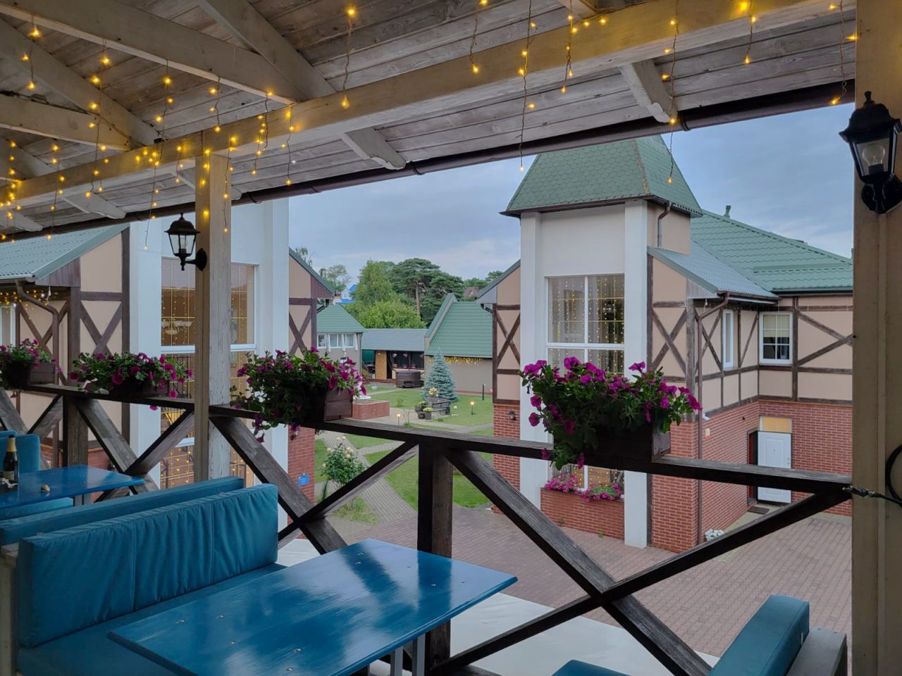 Уютный отель. Обустроенная территория. Вежливое и душевное обслуживание. Номер выше всяких похвал. Шикарное белье. Пушистые полотенца. Халат, тапочки и милые мелочи в ванной. Телевизор, который знает тебя по имени-это было ооочень мило. Вид из окна, а я жила в мансарде на третьем этаже, просто чудо. Ночью очень тихо, а по утрам поют петухи на соседних участках. Морюшко шумит за лесополосой. Идти до него буквально 5 минут. И сам лес тоже хорош. В море заход пологий, что важно для тех, кто приезжает сюда с детьми. Чистый песчаный пляж. Рано утром меня там ждал сувенир в виде горсти янтаря. Прогулка. А потом вкусный завтрак. Есть и шашлычная зона. И кинотеатр под открытым небом. В общем хозяева постарались на славу для того, что бы у вас осталось впечатление, что вы гостили у друзей. У меня именно так и получилось.