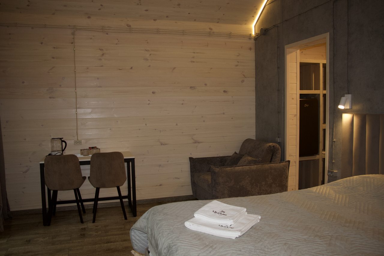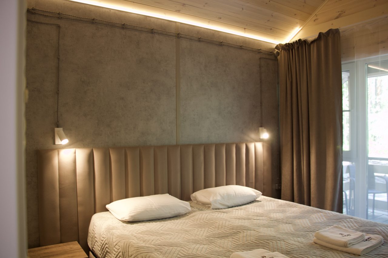 Расположение просто великолепное, действительно смогли отдохнуть и телом и душой. Номер нам понравился, в нем не было ничего лишнего, выполнен хороший ремонт, была комфортабельная мебель. Не знаем, была ли звукоизоляция в комнатах, но соседи нам не мешали, лишних и посторонних звуков не было. Также удивила чистота и регулярная уборка, что также нам понравилось. Персонал очень приветливый и заботливый. Цена за предложенные условия адекватная.