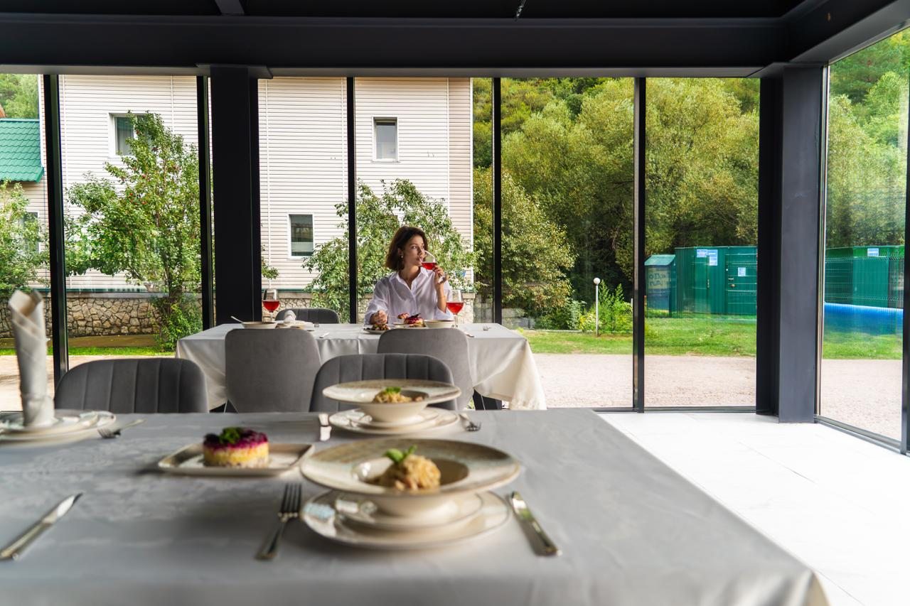 Плюс это конечно обслуживание в ресторане,питание, красивые виды вокруг. Бассейн с хамамом и сауной. Номер чистый, уютный, с лоджией, все новое, запах ремонта еще присутствовал