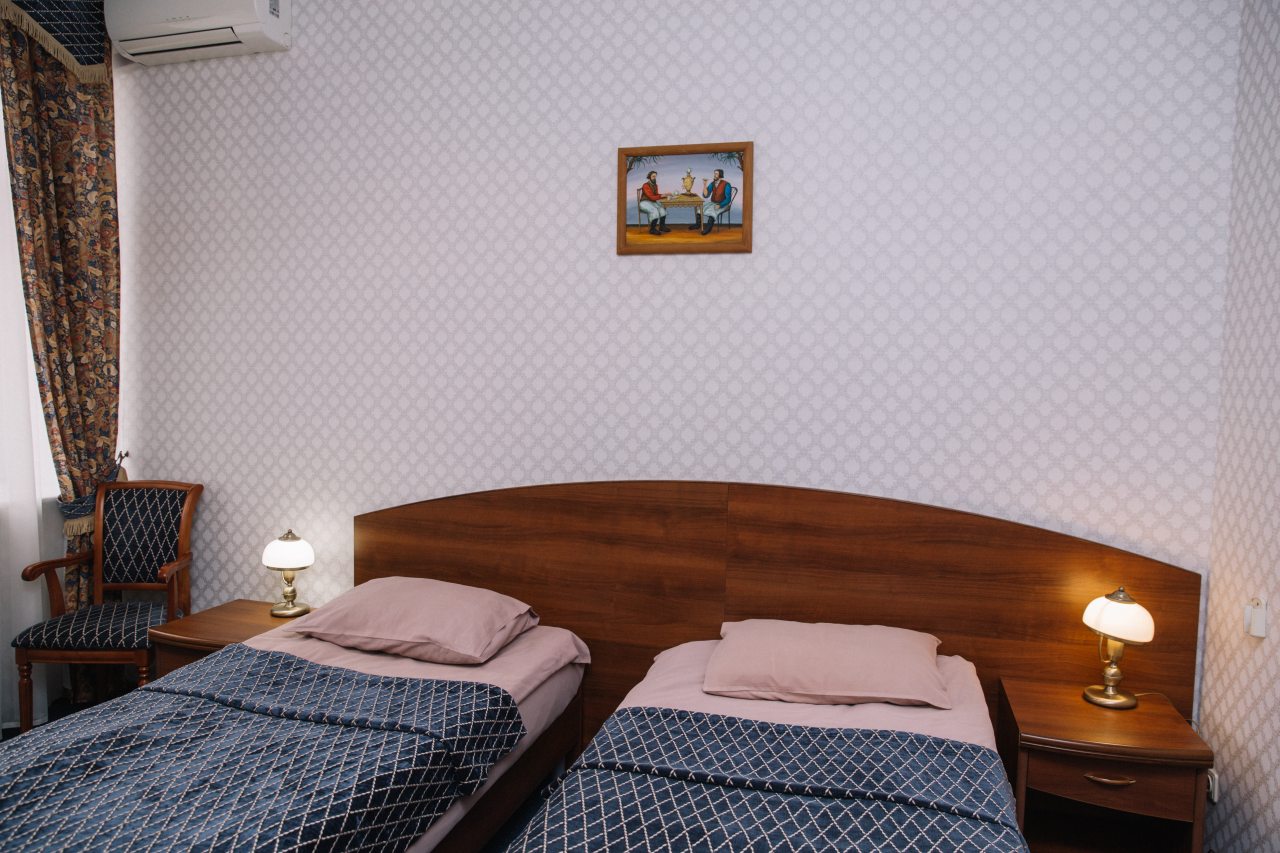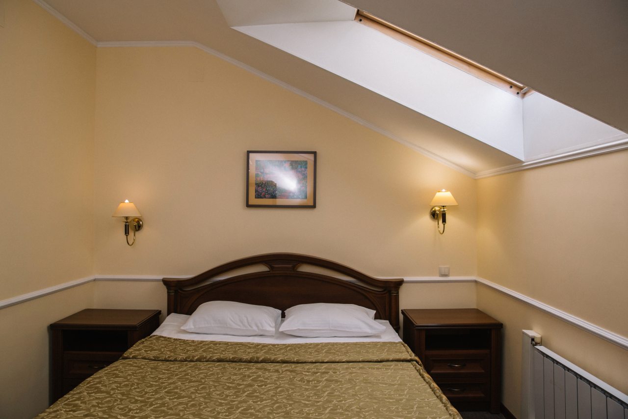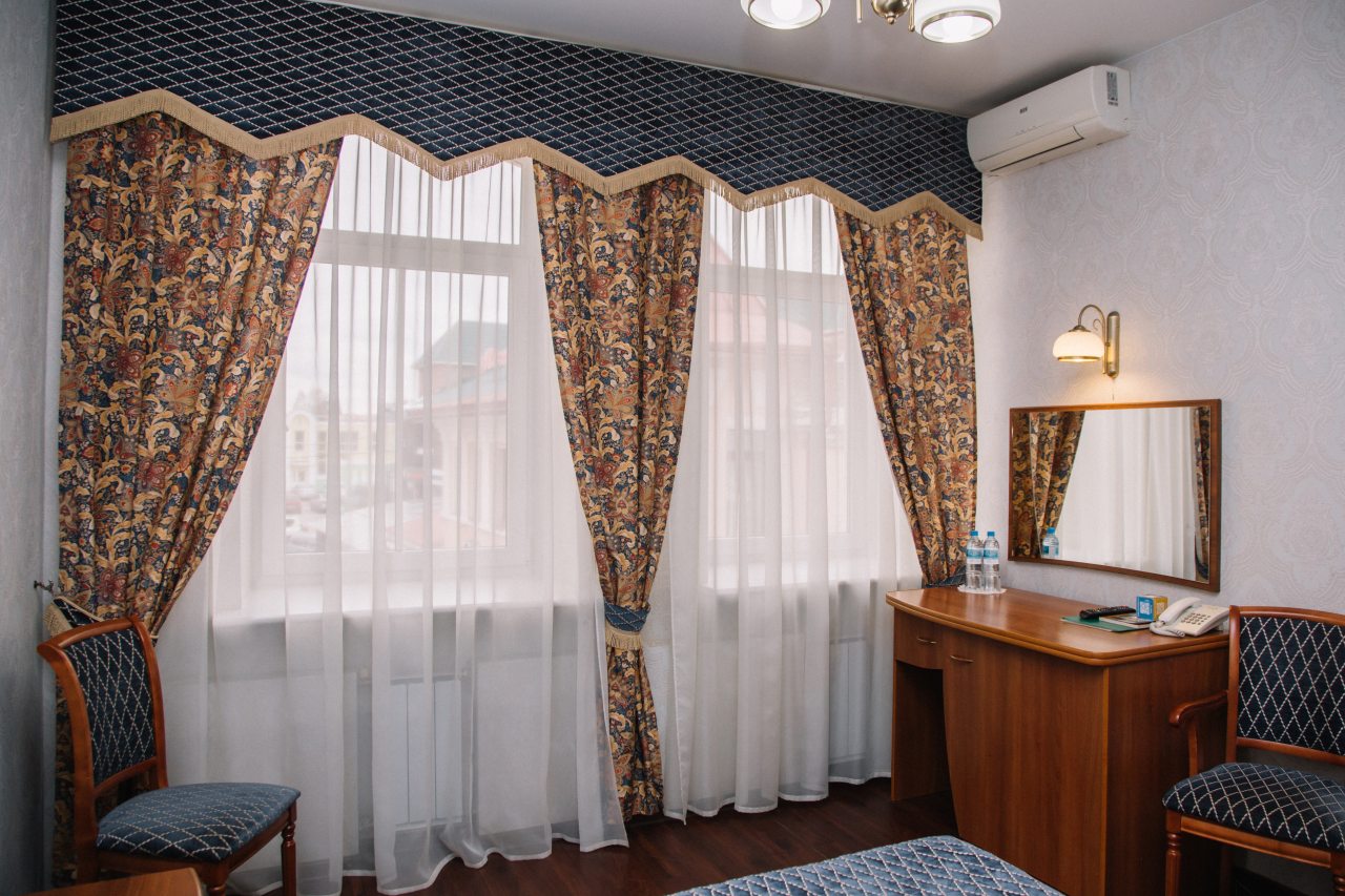 Занимали в отеле двухместный стандарт со сплит-системой. Бронирование оформляли заблаговременно. Санузел в номере отдельный. Постельное, мебель - все в отличном состоянии. Расположение этого гостиничного комплекса отличное в центре города. Само здание является памятником архитектуры, поэтому в нем царит особая атмосфера. Ресторан, который работает при гостинице, предлагает хорошее меню и в целом нас порадовало обслуживание.