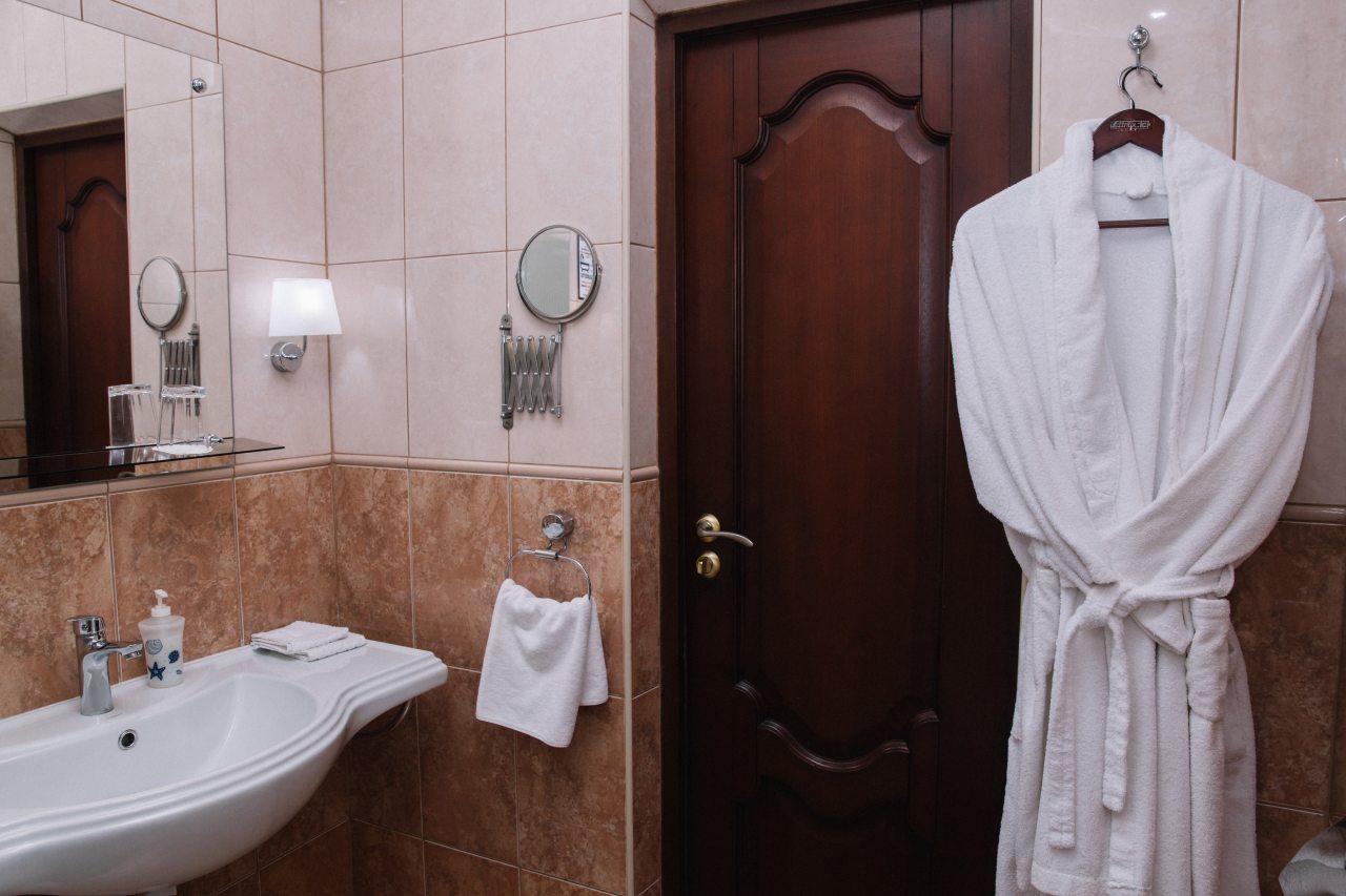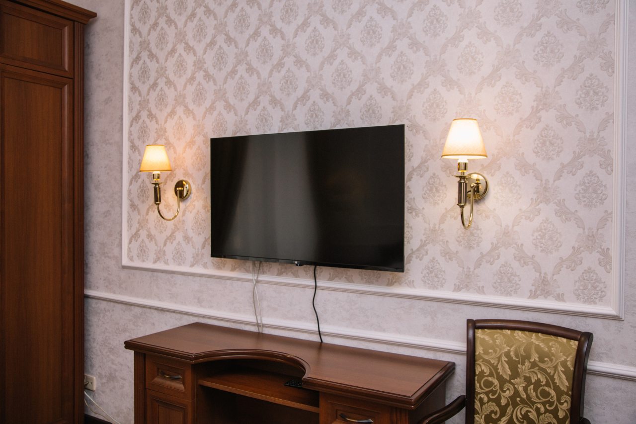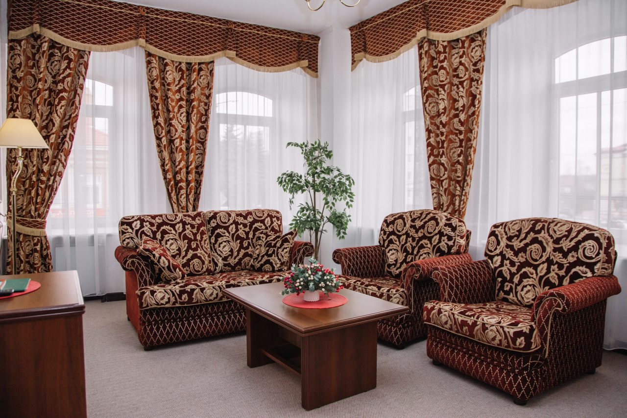 Занимали в отеле двухместный стандарт со сплит-системой. Бронирование оформляли заблаговременно. Санузел в номере отдельный. Постельное, мебель - все в отличном состоянии. Расположение этого гостиничного комплекса отличное в центре города. Само здание является памятником архитектуры, поэтому в нем царит особая атмосфера. Ресторан, который работает при гостинице, предлагает хорошее меню и в целом нас порадовало обслуживание.
