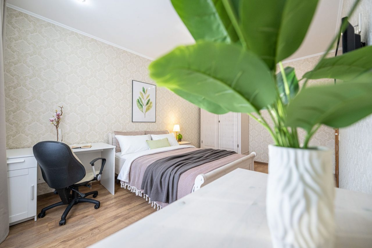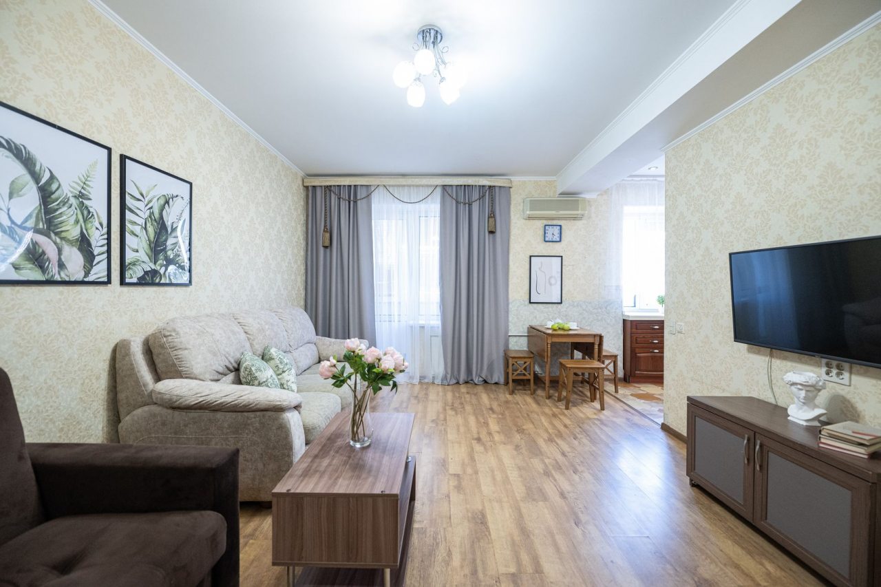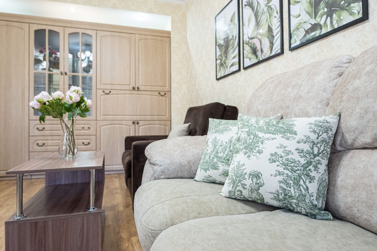 Интерьер стильный, есть своё настроение, что добавило уюта. Кухня удобная, вечером готовили ужин, было приятно посидеть в компании. Локация тоже подошла, всё необходимое оказалось рядом. Были приятно удивлены уровнем удобства, как будто находимся дома.
