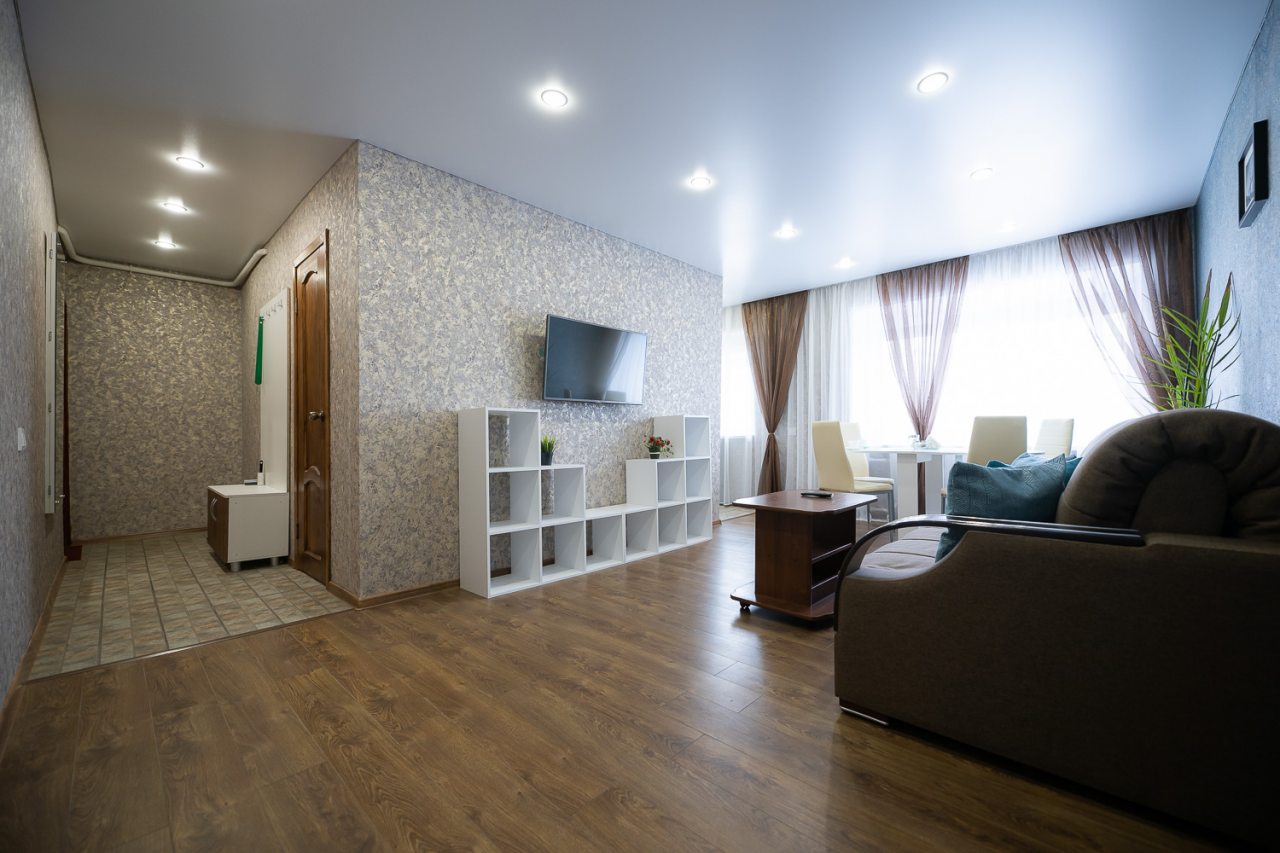 В этой просторной квартире мы провели 6 дней. Приезжали с детьми, разместились каждый в своей комнате. Расположена квартира неподалеку от центра Челябинска. На кухне есть посуда, нам удавалось готовить и достаточно много. За обеденным столом как раз вчетвером размещались. Особенно отмечу, что в квартире было чисто и все отлично подготовлено. Выехали мы без проблемы, все остались довольны.