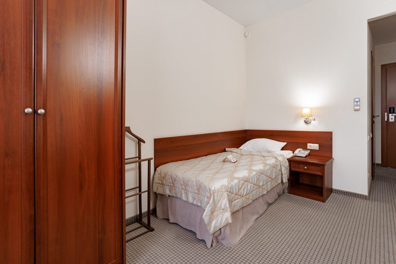 Удобный номер с односпальной кроватью, вкусные завтраки, современный интерьер, доброжелательные сотрудники, очень вкусные блюда в ресторане