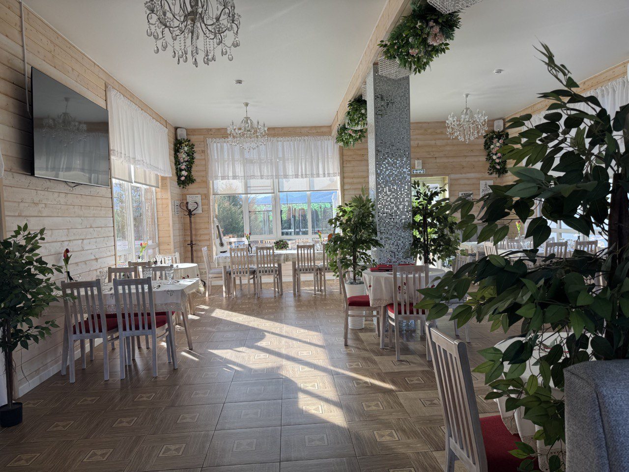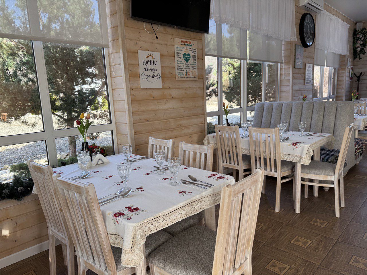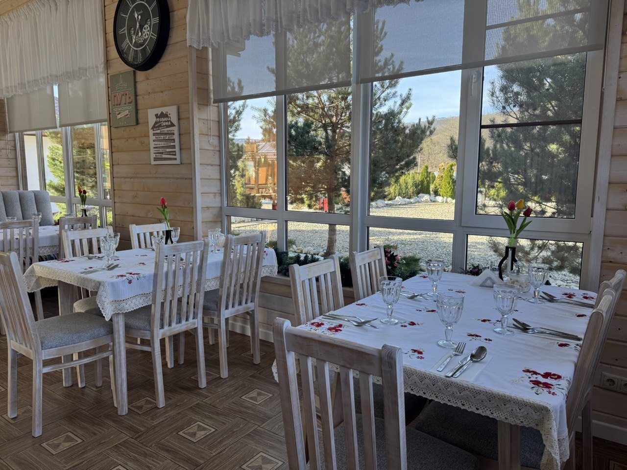 Вокруг горы, леса и чистейший воздух. Номера уютные со всеми удобствами. На территории зона для барбекю и детская площадка. Мы заказали прогулку по окрестностям — впечатления просто незабываемые. Питание в столовой вкусное и сытное, готовят из местных продуктов.