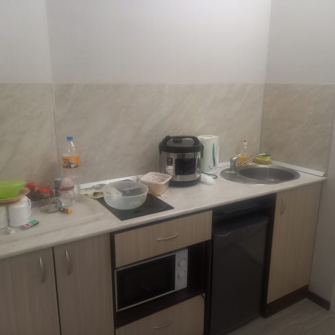 Из недостатков: из минусов несколько мелочей:чайник и кран на кухне пора заменить,они очень устали,и не хватало коврика в ванне,пол холодный.После уборки нам принесли небольшой,мы его перед унитазом постелили,но там и перед душем нужен какой-нибудь резиновый.И еще часа в 2 дня каждый день как будто мебель передвигали постоянно над нами,звук скрипучий был,я так и не спросила,что это было,может,другие гости шалили